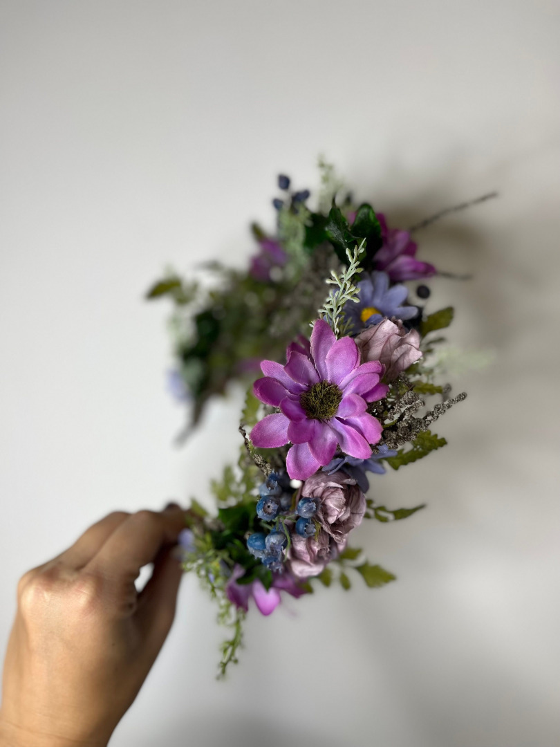 Perfect for weddings, photoshoots, parties, Halloween or other events. It is made of artificial/fabric flowers, preserved material and other material used for arranging.