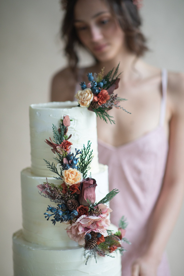 Ručne robené kvetinové zápichy na tortu.Môžete použit spolu i zvlášť.Set za zvýhodnenú cenu.Tieto aplikácie sú trvácne a môžete ich rôznymi spôsobmi využiť aj po svadbe.Drobný konzervovaný materiál môže opadávať.Vhodné na svadby(rustikálna svadba,boho svadba,svadba v stodole či na záhrade,alebo v lese)narodeninové oslavy či iné špeciálne príležitosti.
