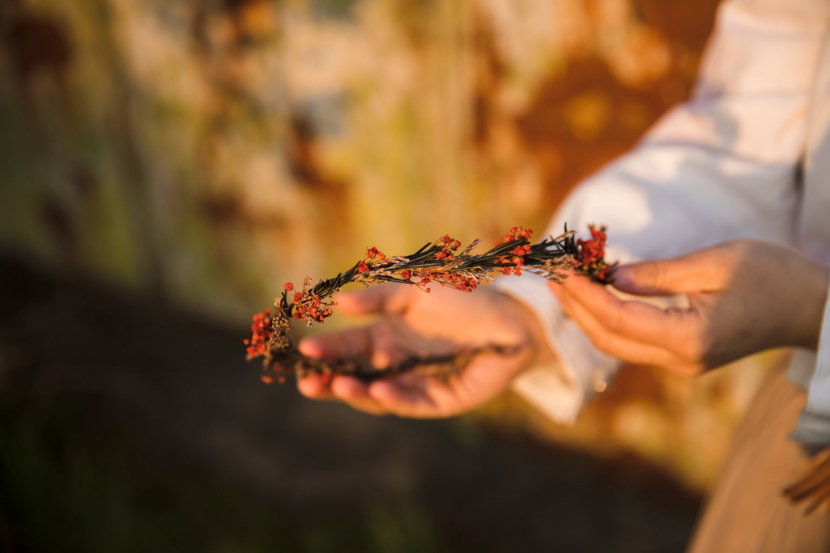 Venček je vyrobený z konzervovaných kvietkov gypsomilky a rozmarínu. Venček je krehší, keďže ide o prírodný materiál. Pri preprave môže pár kvietkov opadnúť, netreba sa báť, nejde o chybu produktu.