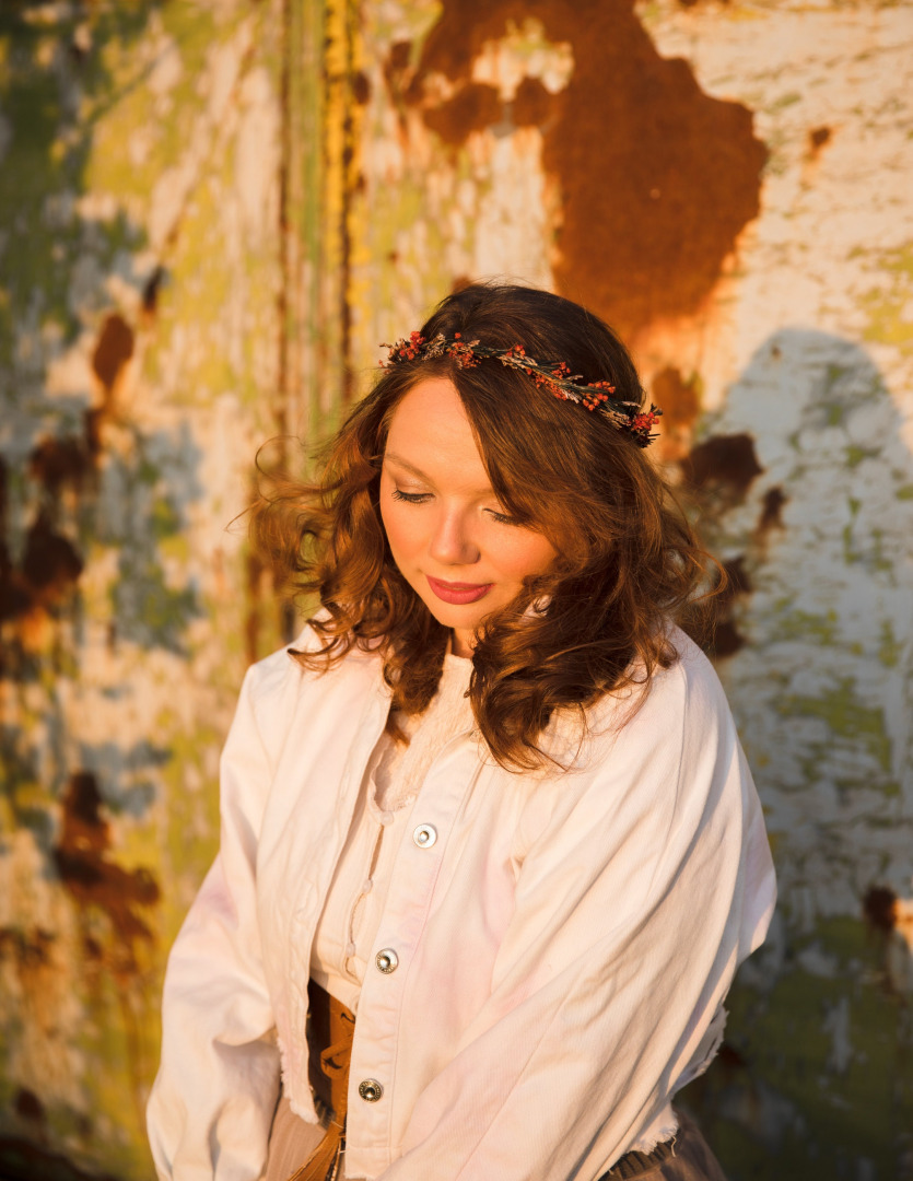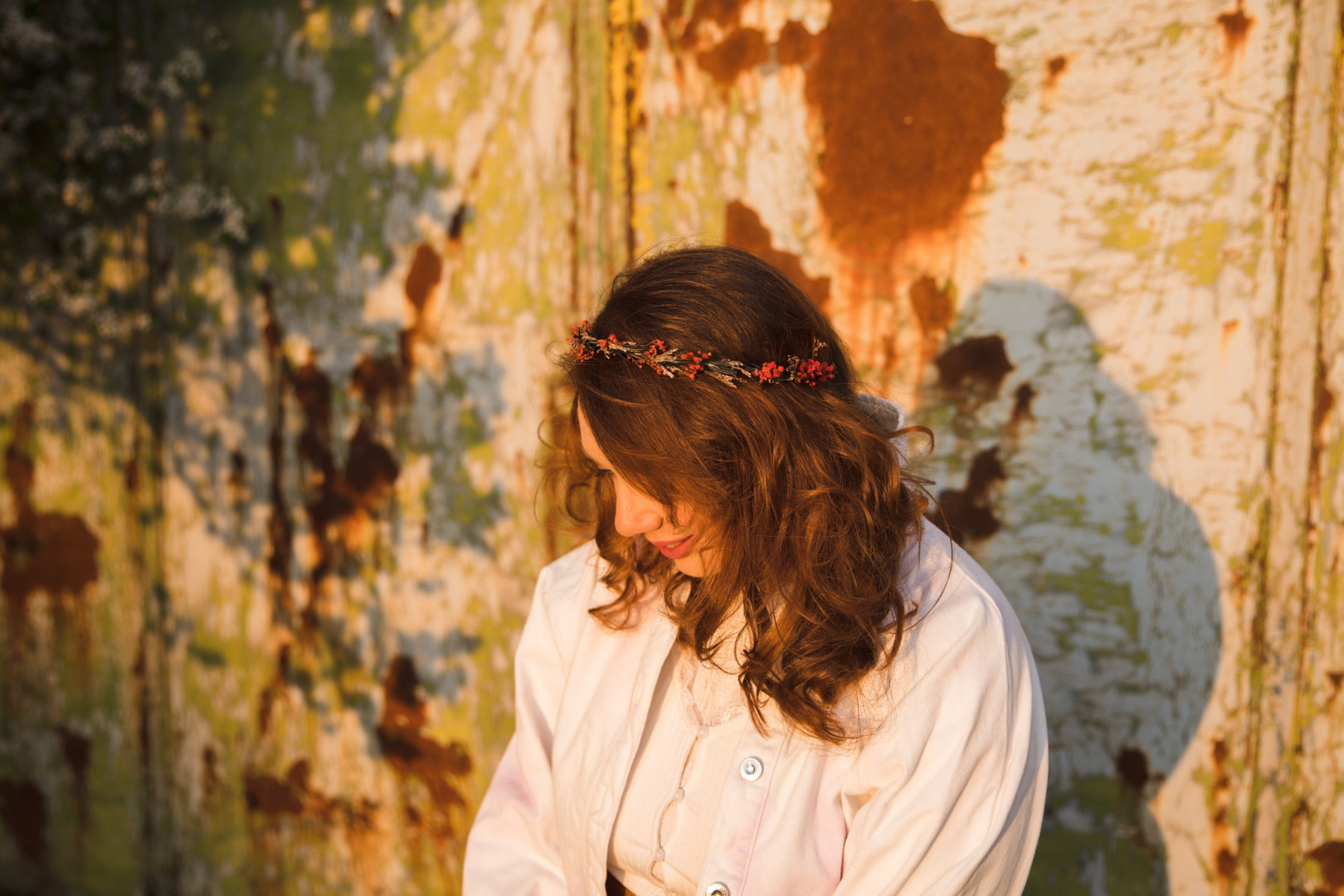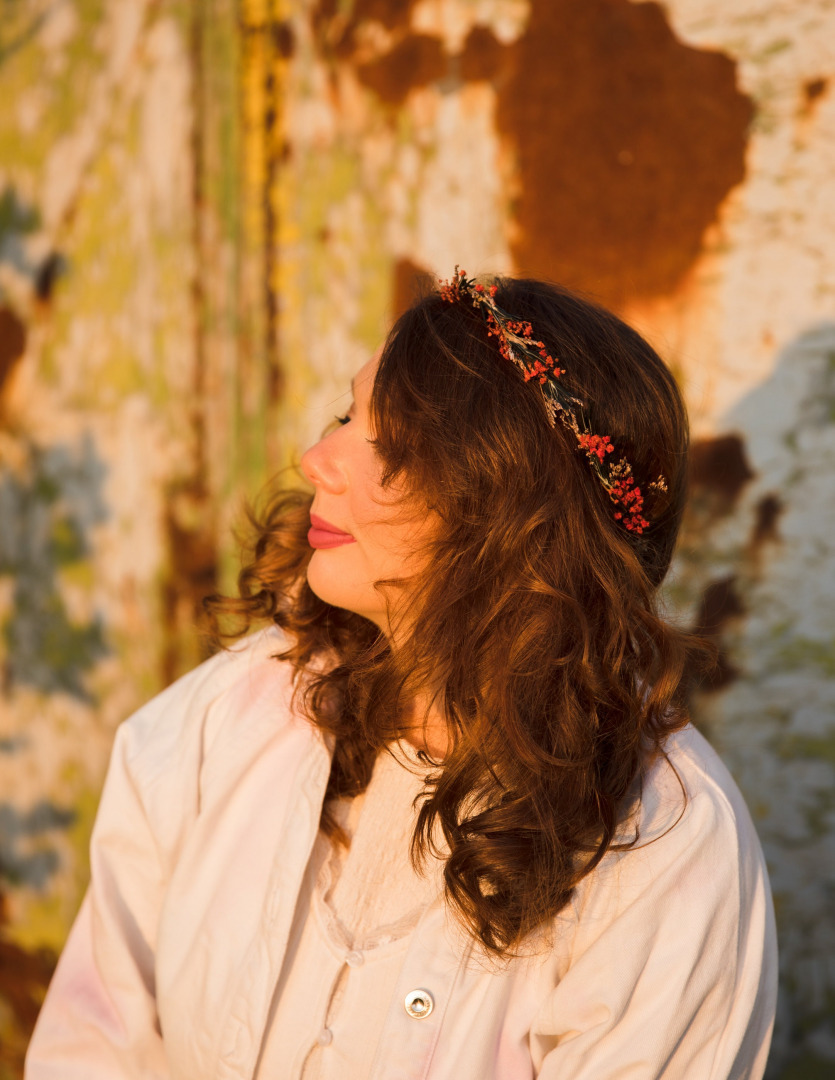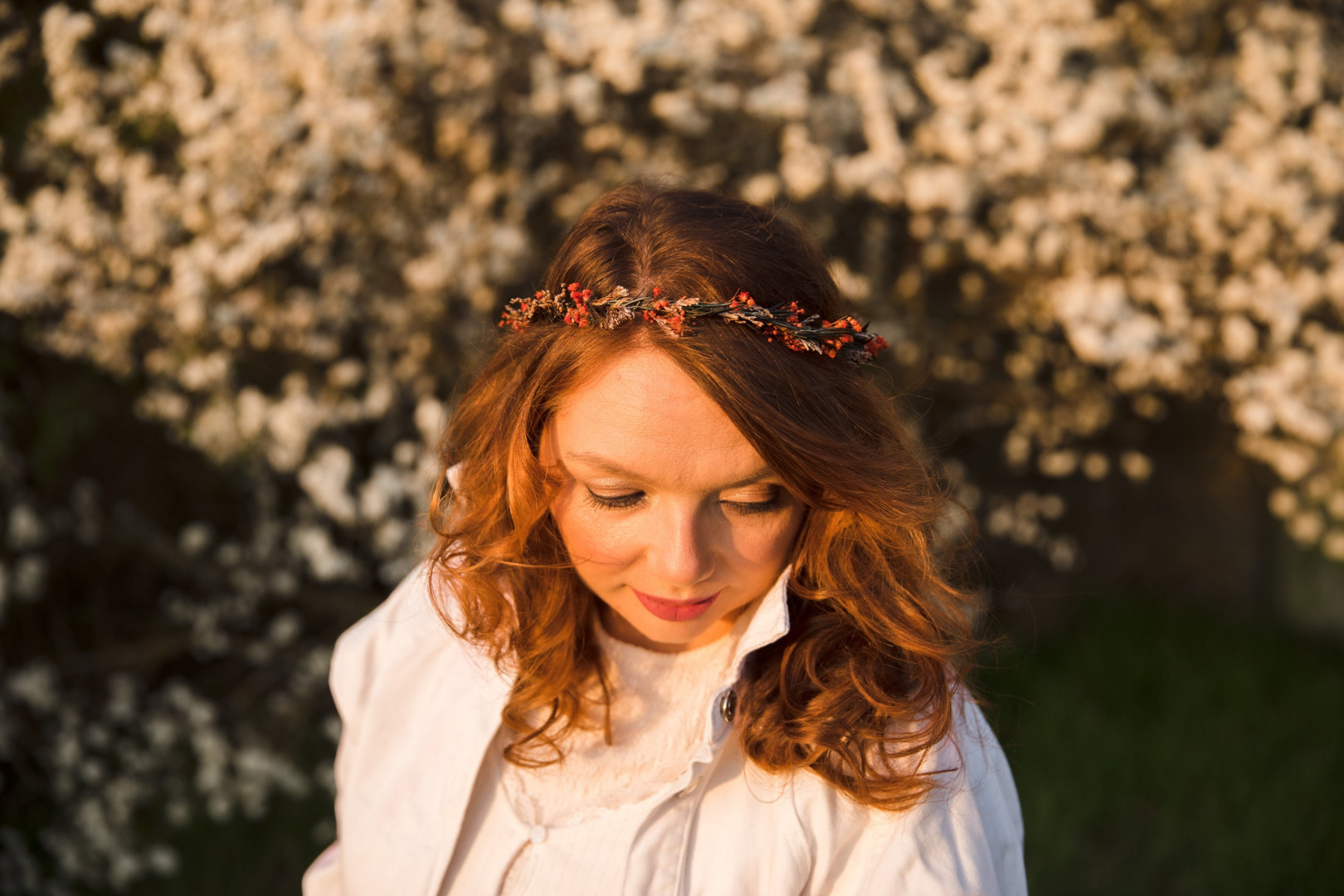 Kvetinový venček v naturálnom štýle. Obvod venčeka je 48-53 cm. Veľkosť je univerzálna, venček sa viaže a prispôsobuje viazaním stuhou v zadnej časti. ...