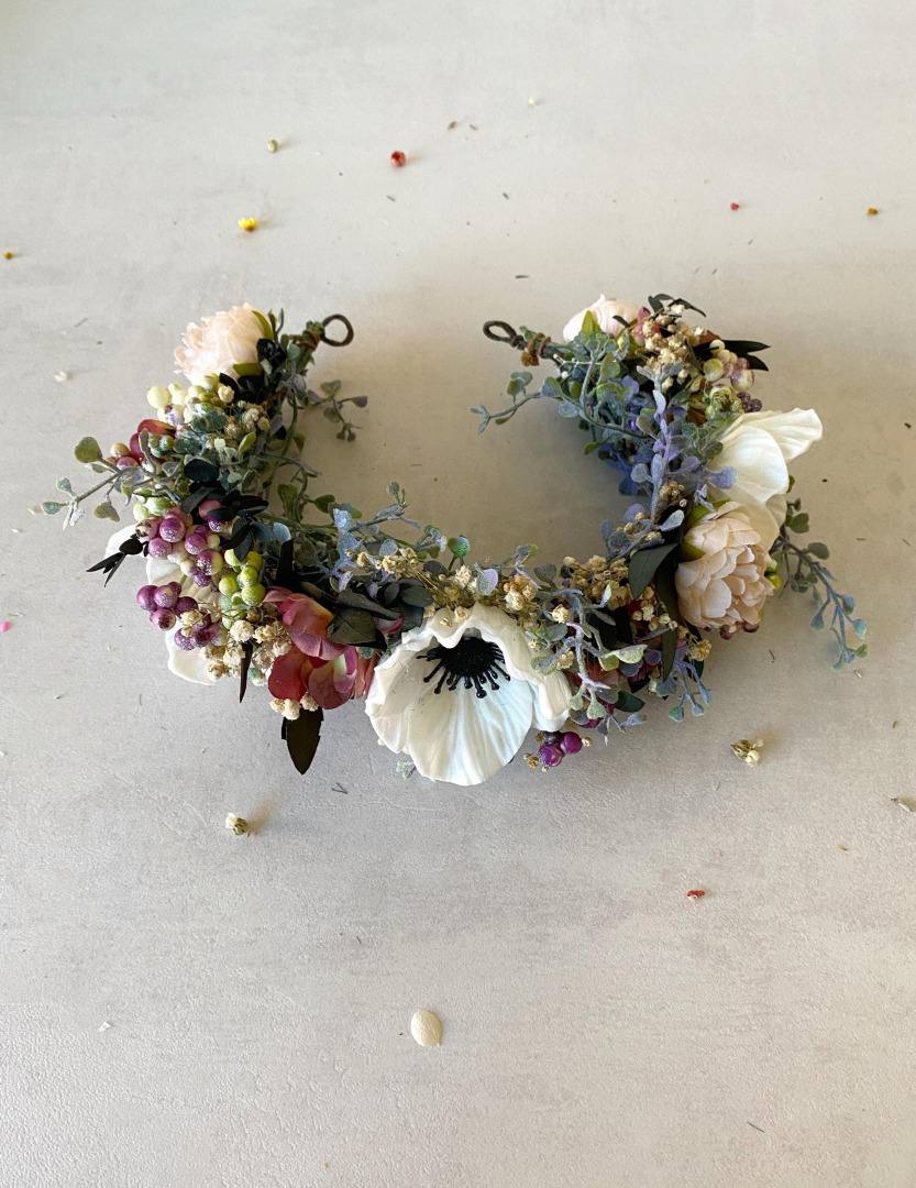 Anemone wedding half wreath White dusty pink flower crown Bridal crown with berries Romantic baby's breath hair wreath Magaela accessories
