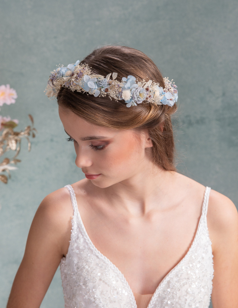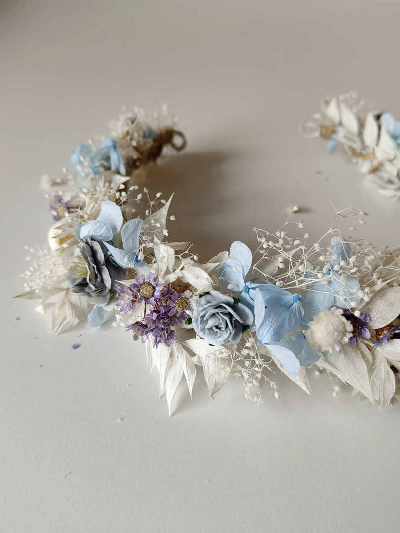 Perfect for weddings, photoshoots, parties, summer festivals or other events. It's made of artificial/fabric flowers, preserved leaves, grasses, hydrangea and other material used for arranging.