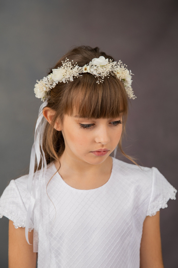 PROMOTIONAL PRICES! Holy communion flower crown with ribbon veil, bracelet, belt :)