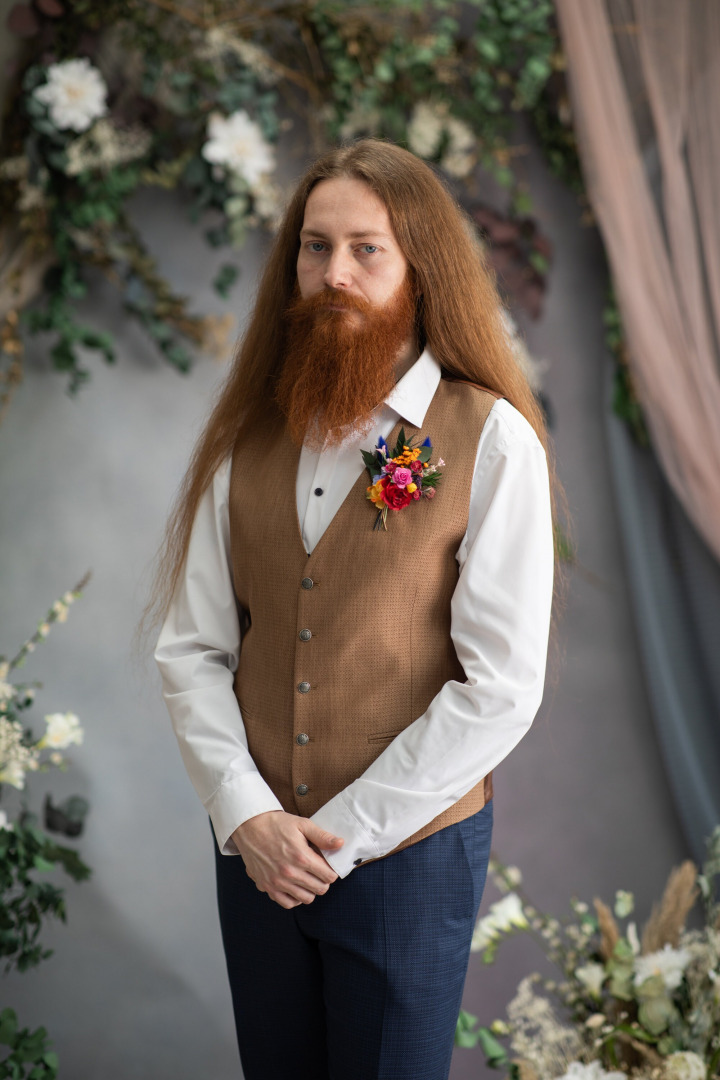 Svadobné pierko pre ženícha v klasickej verzii. Pripína sa pomocou špendlíka alebo zicherky. V rovnakom dizajne vieme vyrobiť aj pierka pre svedkov, družbov, otcov či mini pierka pre svadobčanov. V ponuke aj pierka do vrecka.