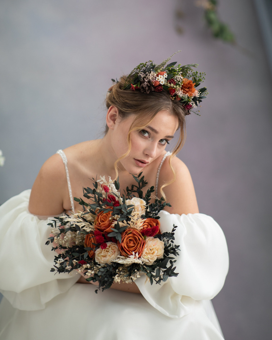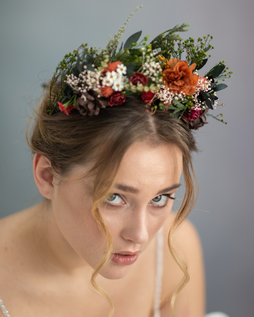 Natural flower crown in woodland design. Earthy tones. Suitabe for woodland or for autumn weddings.