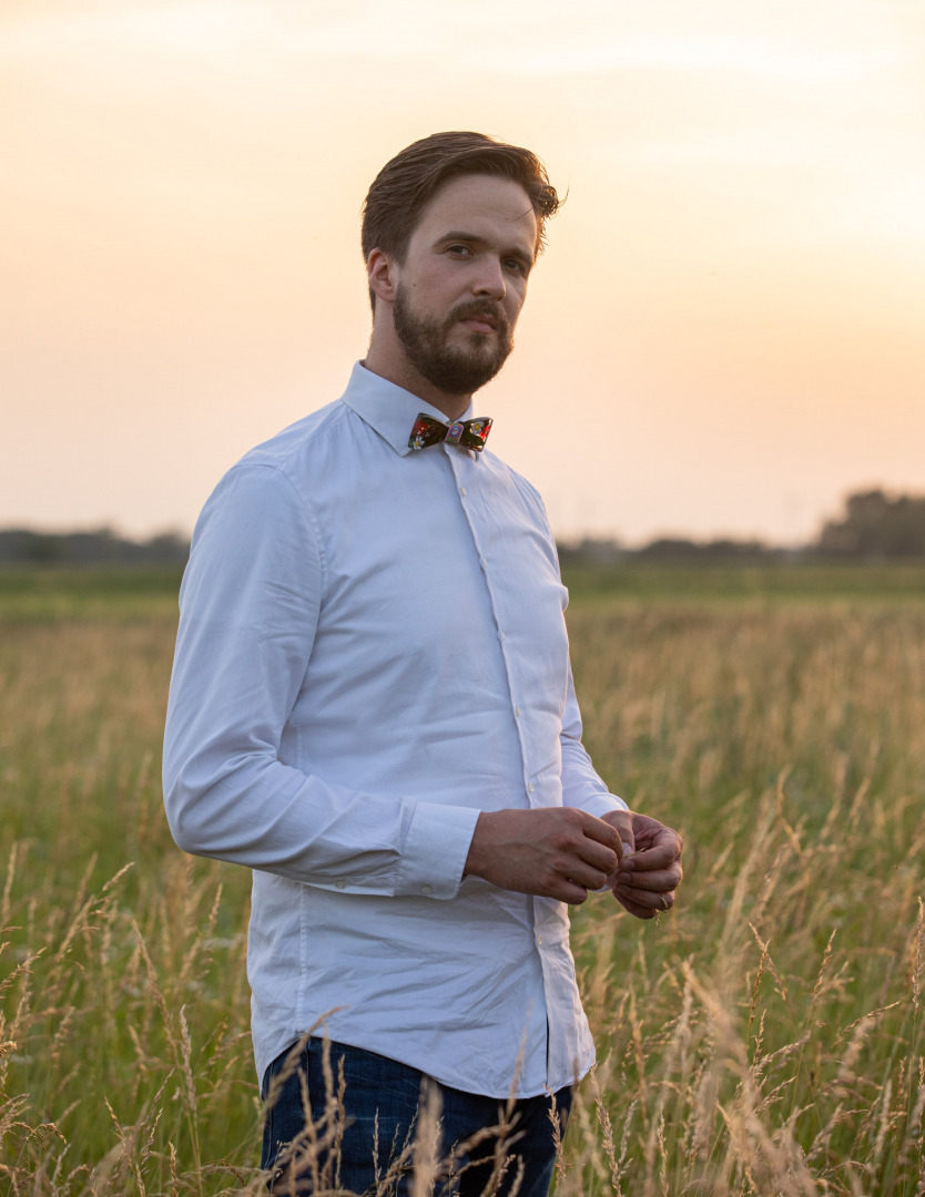 Ručne robený živicový motýlik s kvetmi z našej dielničky. Môže sa kombinovať aj s drevom. Viazanie je kvalitne šité a nastaviteľné, farba viazania sa dá prispôsobiť. V prípade, ak motýlik nie je skladom, doba výroba je 2-3 týždne.