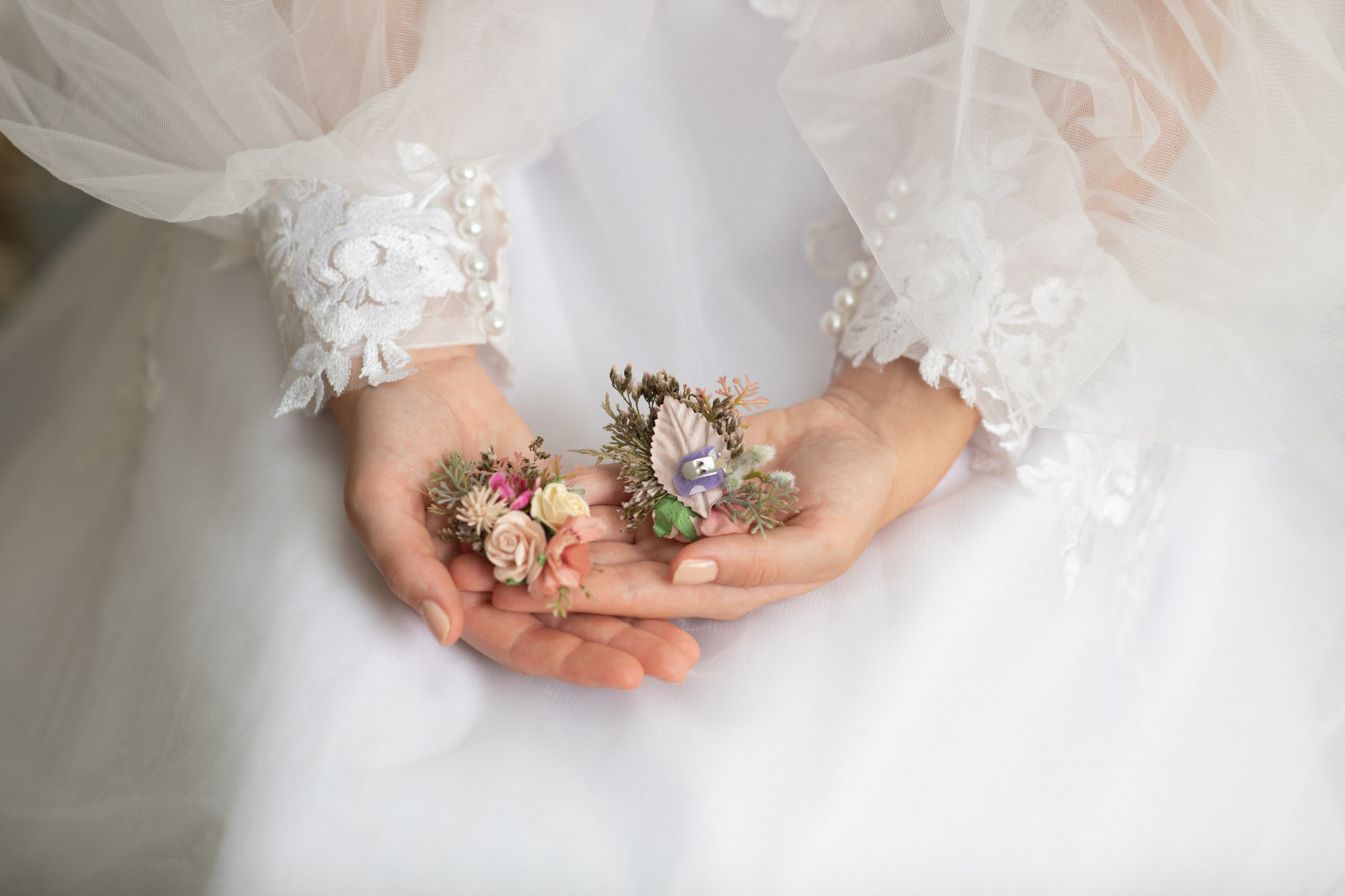 The flower shoe clips are made of preserved and artificial flowers, grass, leaves, ...