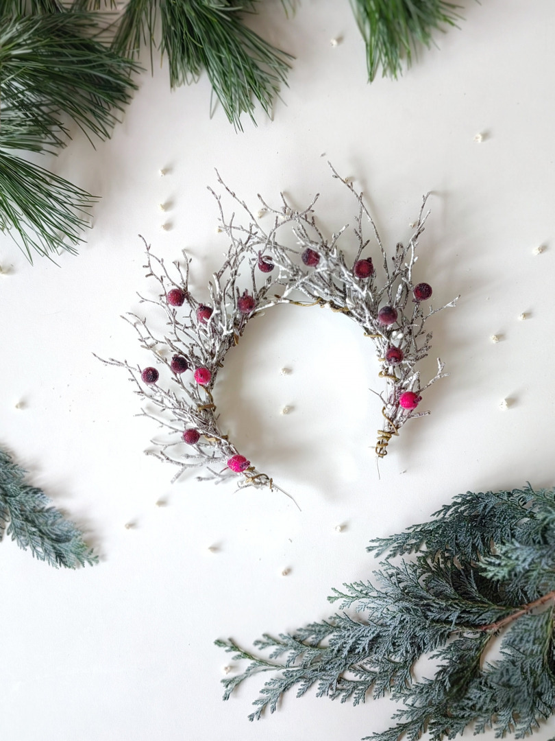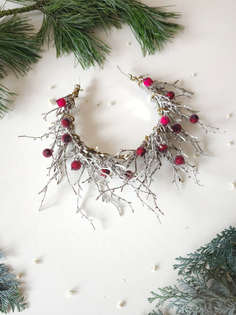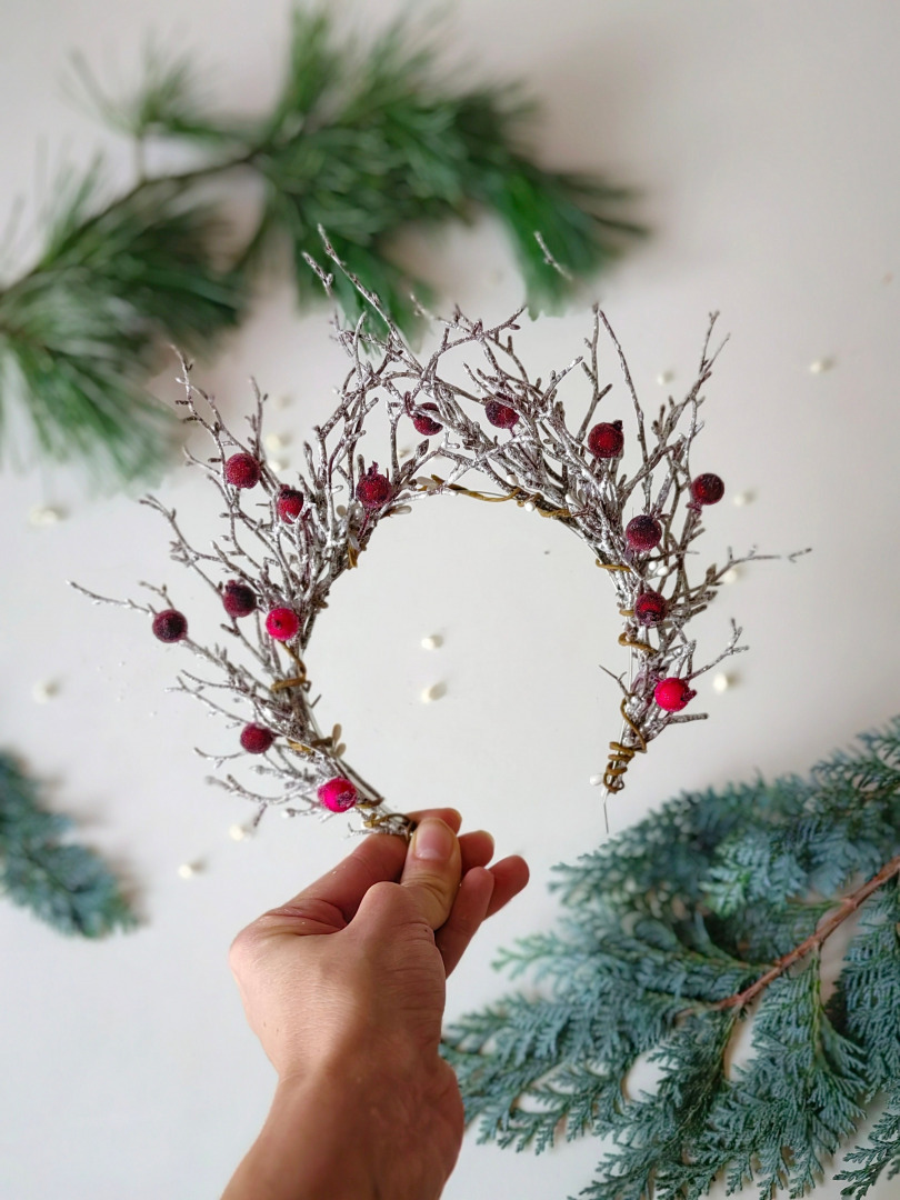 Winter flower crown with frozen berries. Suitabe for wedding or for proms and other special events.