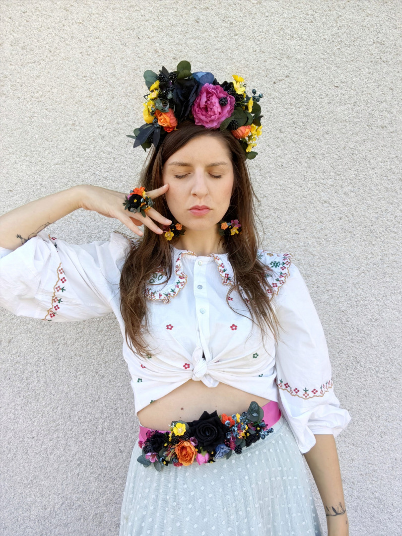 Perfect for weddings, photoshoots, parties, other events or everyday look. Nice gift for bridesmaids or friends. Made of artificial, dried and preserved material and other material used for arranging.