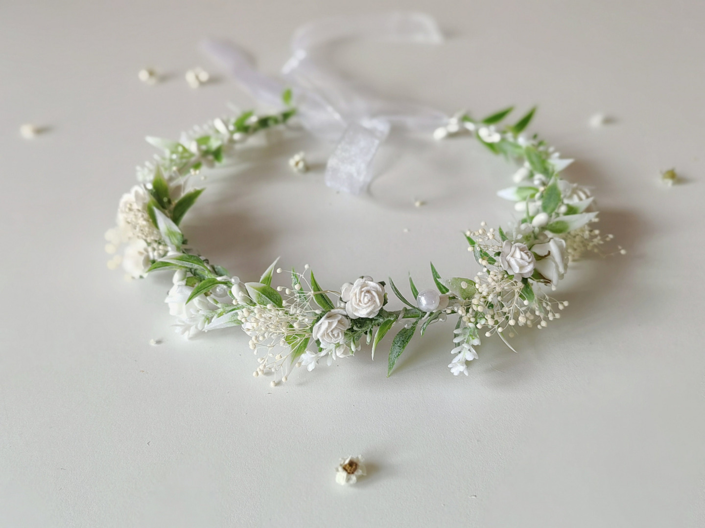 Whith flower hair wreath with pearls perfect for first holy communion, weddings or other special occasions and celebrations.