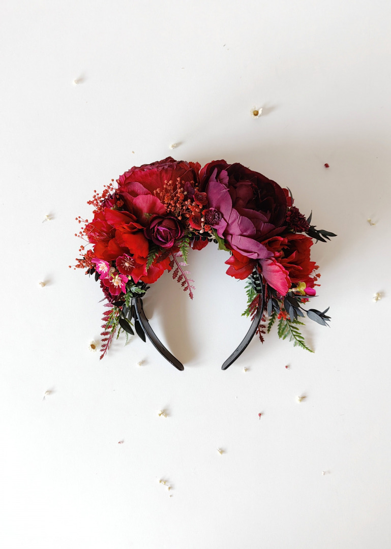 Frida Kahlo inspired flower headband. In burgundy and dark red tones...