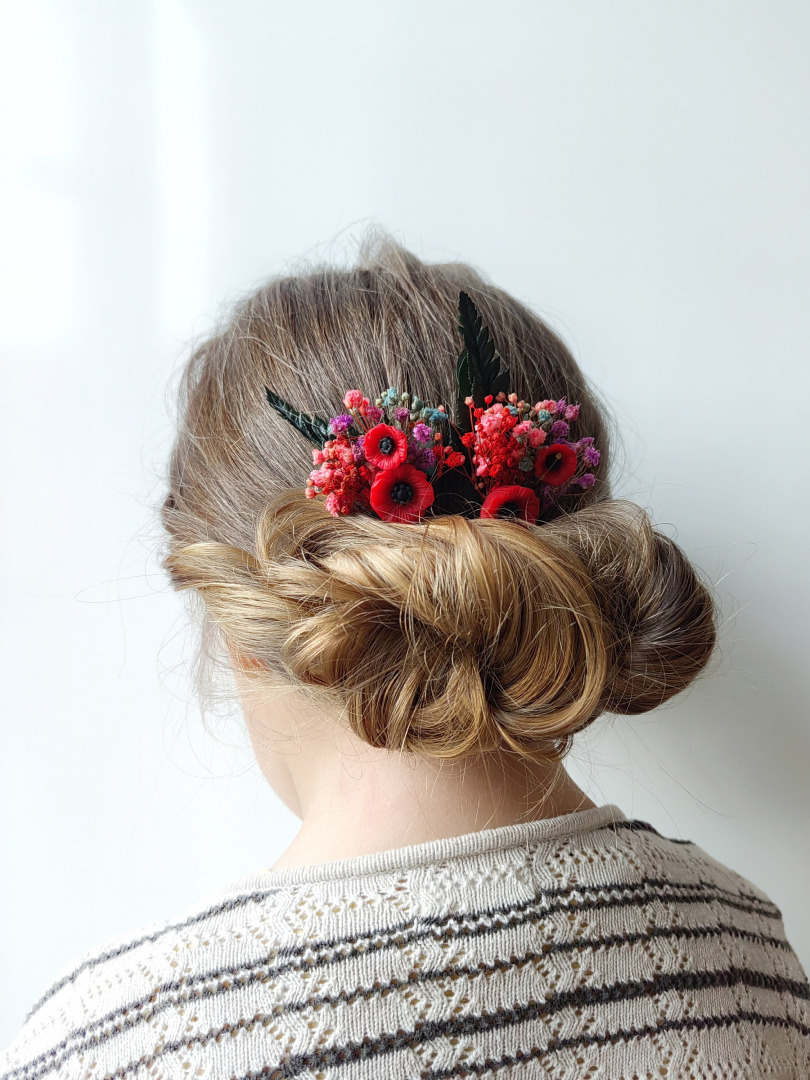 Floral hair pins in folk meadowy style. Two types - one is purple tones and one in yellow tones.