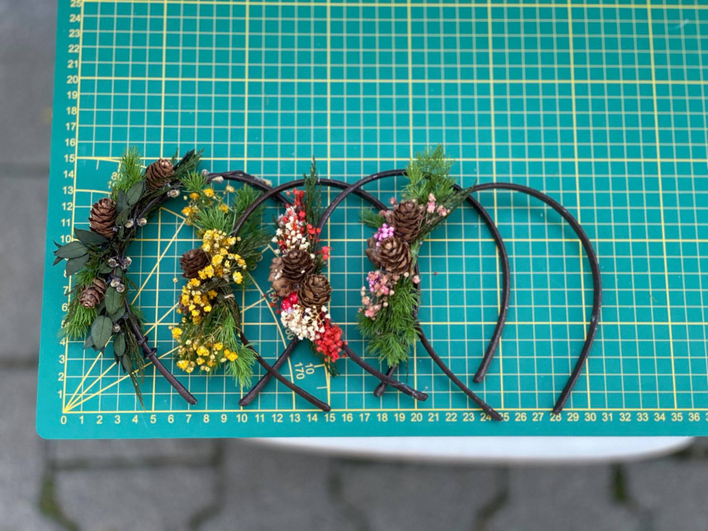 Čelenka je vyrobená z ihličia, šišiek, lístkov, trávy a iných drobností určených k aranžovaniu.