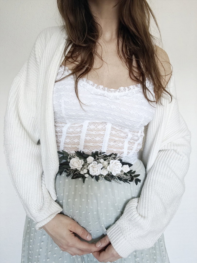 Flower belt Greenery bridal belt Floral belt for dress Eucalyptus belt White roses belt Greenery wedding Rustic wedding Bridal accessories