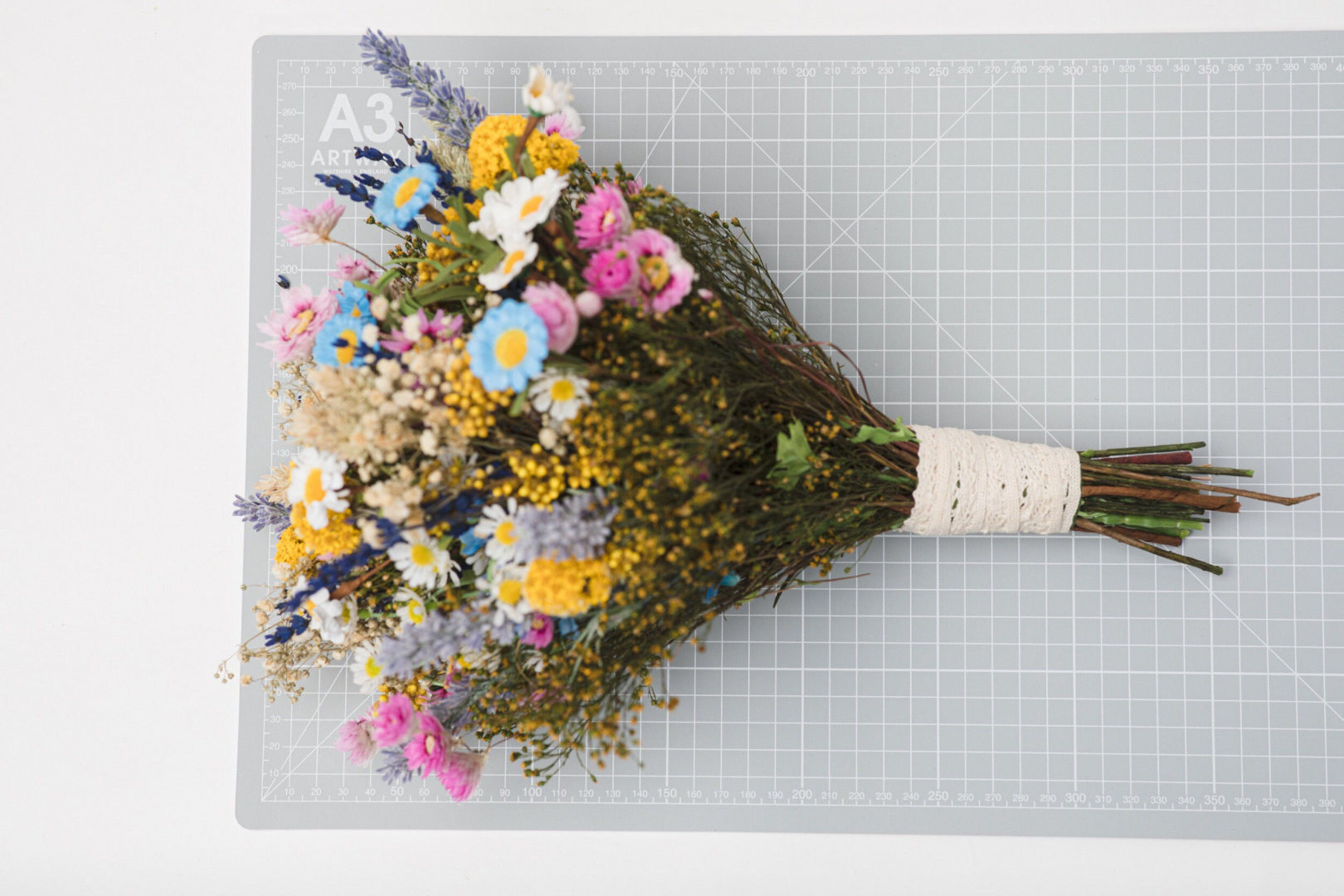 Kytička je vyrobená z textilných kvietkov, lístkov, trávy, textilných kvietkov, krajky a iných drobností určených k aranžovaniu.