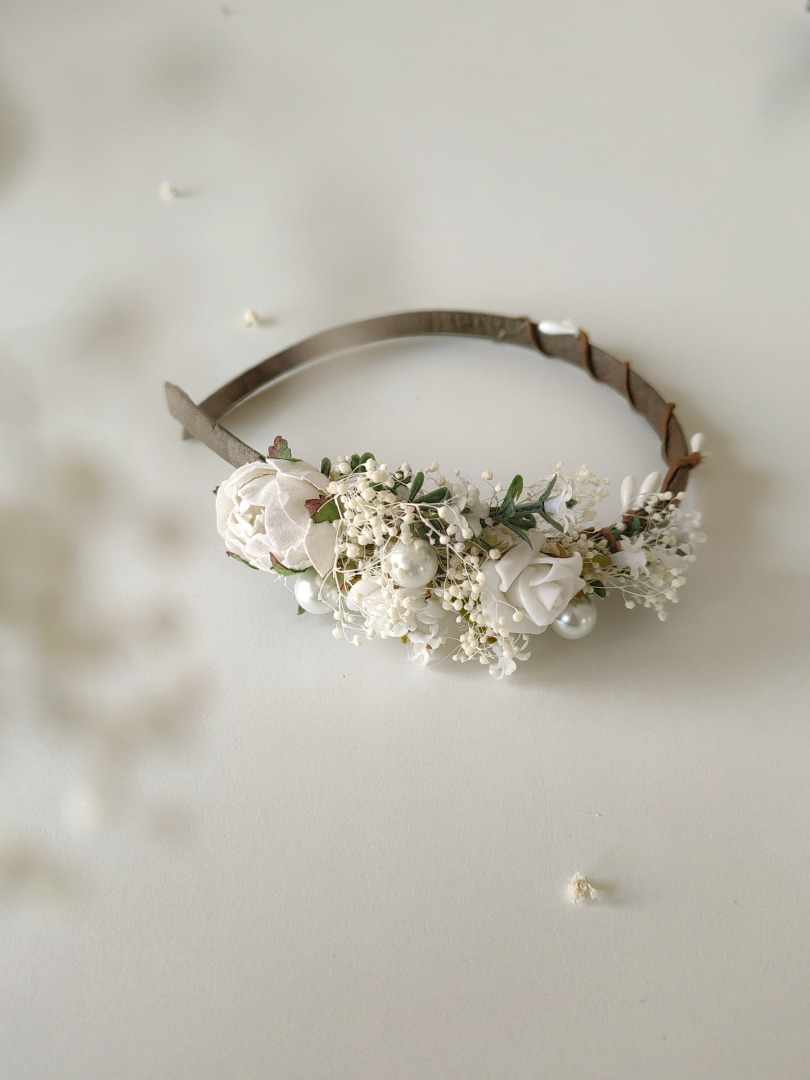 Klasická čelenka zdobená na bok,určená deťom aj dospelým. Mäkký základ sa dobre prispôsobí,netlačí,pohodlná na nosenie. Vhodná na svadbu,ples,stužkovú,rodinné fotenie či iné špeciálne príležitosti,ale aj na bežný deň ako originálny vlasový doplnok.