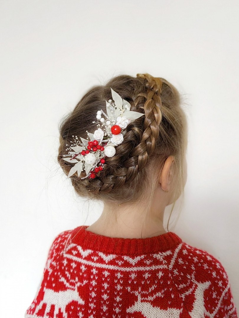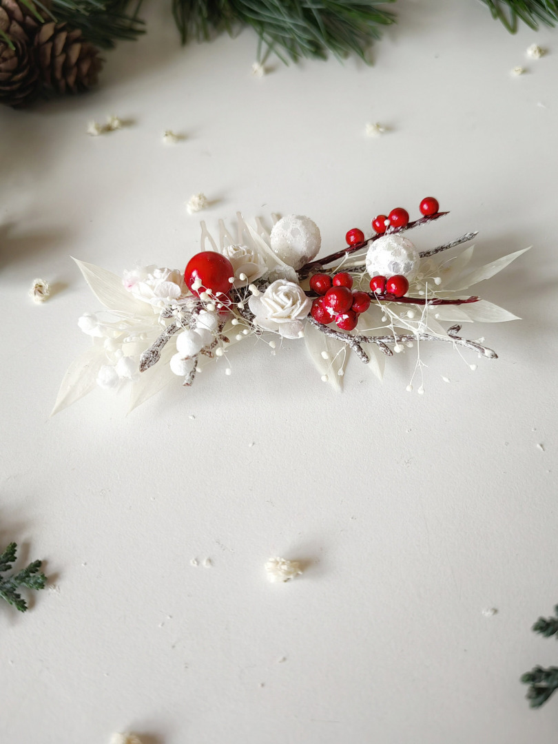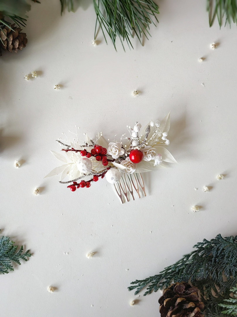 Christmas/winter flower hair comb with berries and ruscus leaves :)