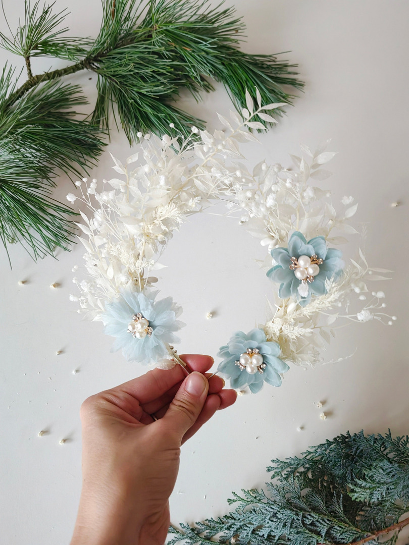 Vintage flower crown with blue flowers. Suitabe for wedding or for proms and other special events.