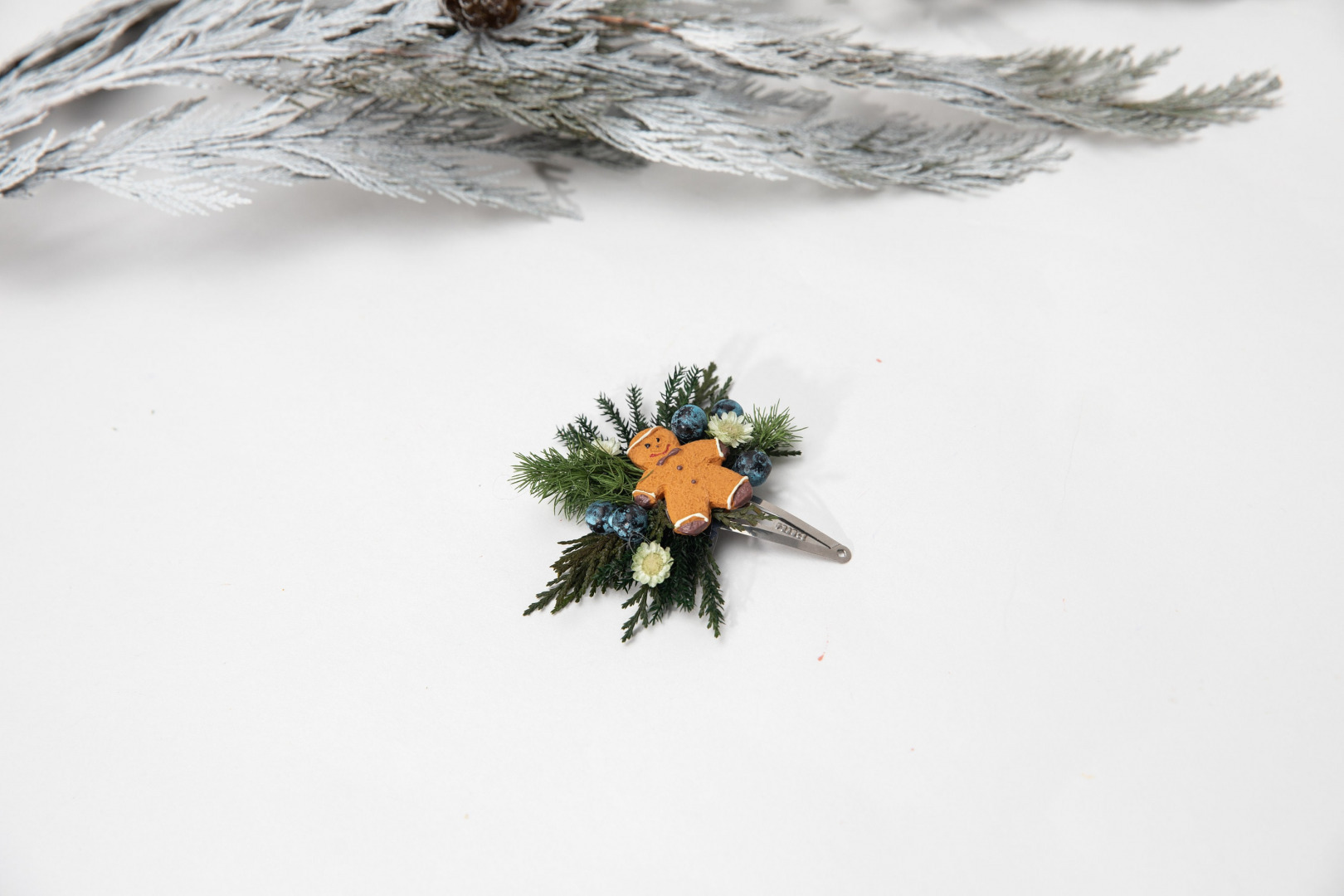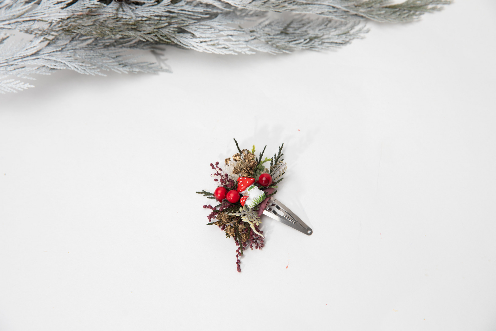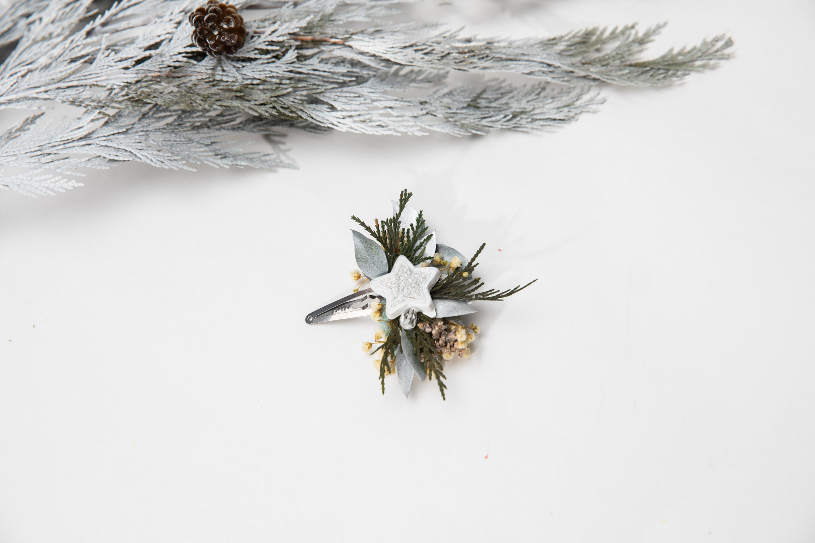 The hair clip is made of artificial and preserved material, flowers, leaves,... and other arranging material.