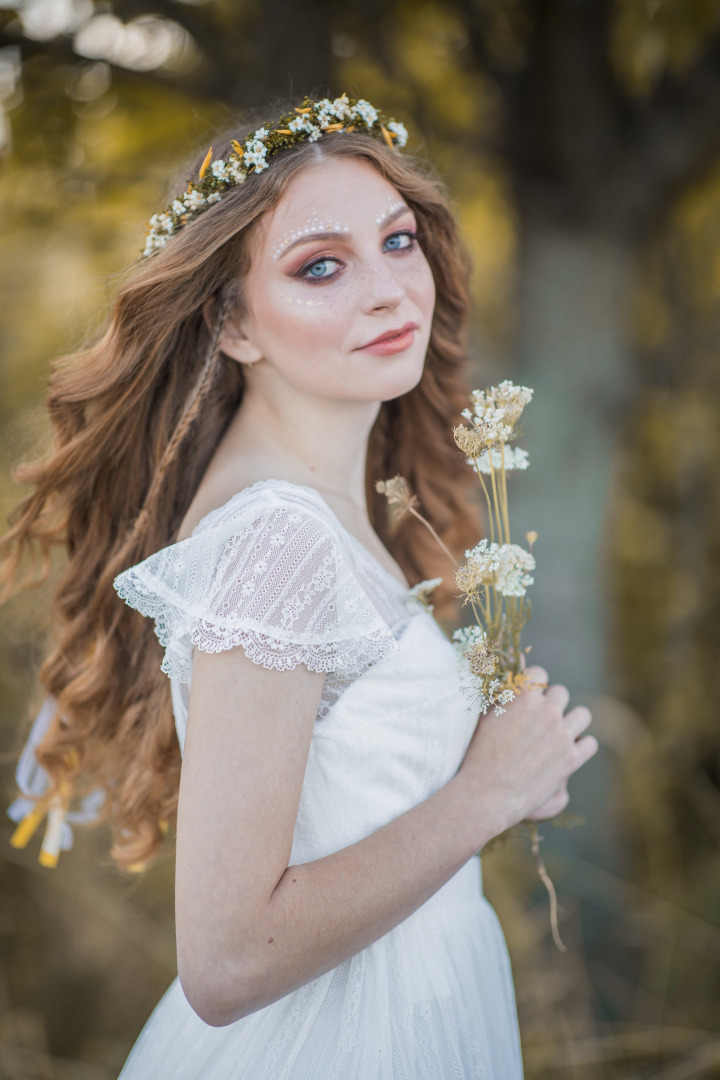 Kvetinový venček v boho naturálnom štýle so závojom. Obvod venčeka je 48-53 cm. Veľkosť je univerzálna, venček sa viaže a ...
