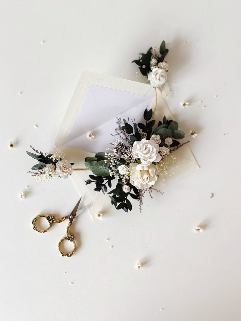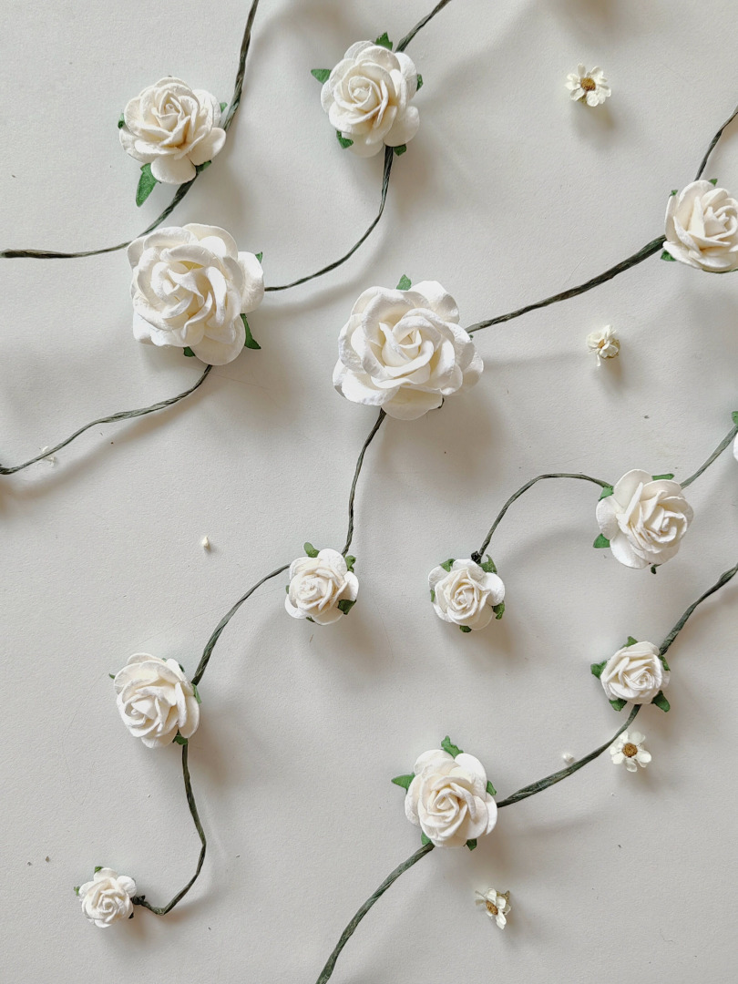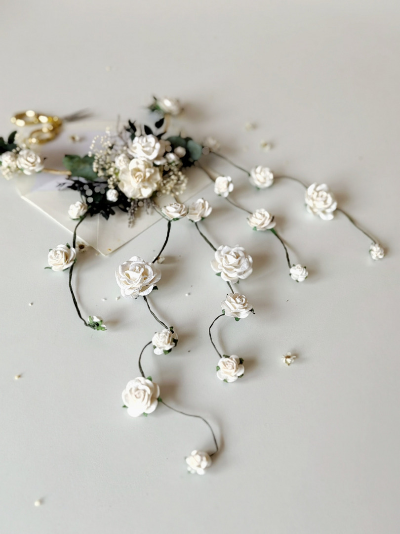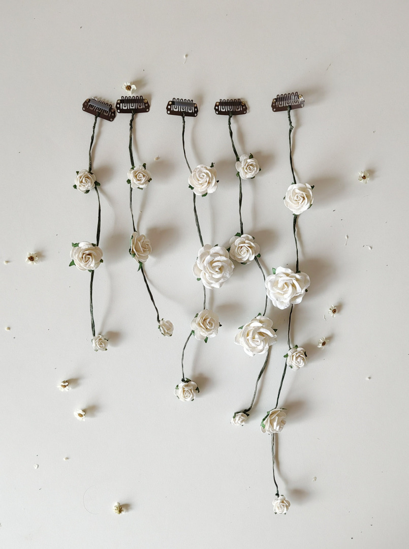 It's bendable/shapeable to perfectly fit your hairstyle! :) You can buy separately or with flower veil - set of 5 flower clips. The length of individual vines is 20-37 cm