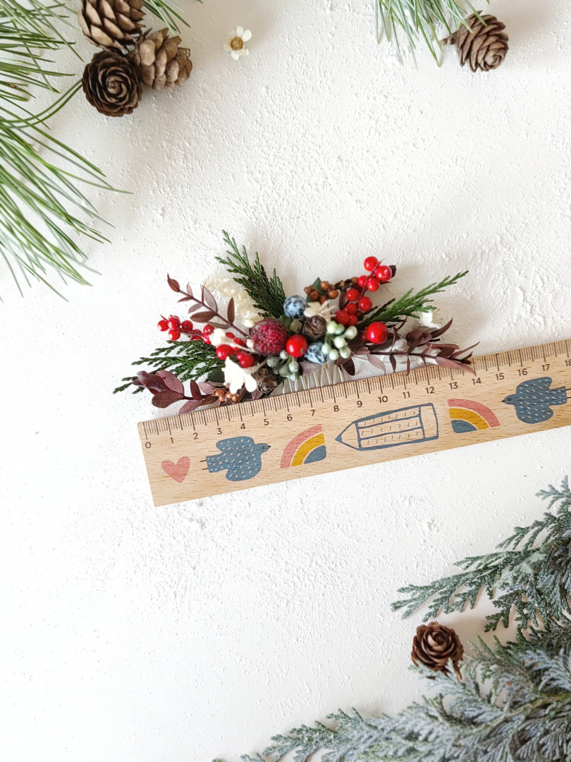 The flower hair comb is made of artificial material, preserved material and other arranging material.