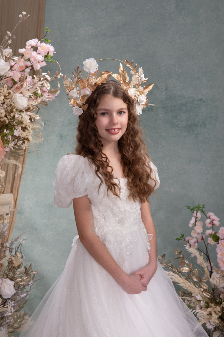 Klasická kvetinová čelenka na špeciálne príležitosti aj bežný deň,zdobená po celom obvode na kovovej konštrukcii. Univerzálna,vhodná pre deti aj dospelých.