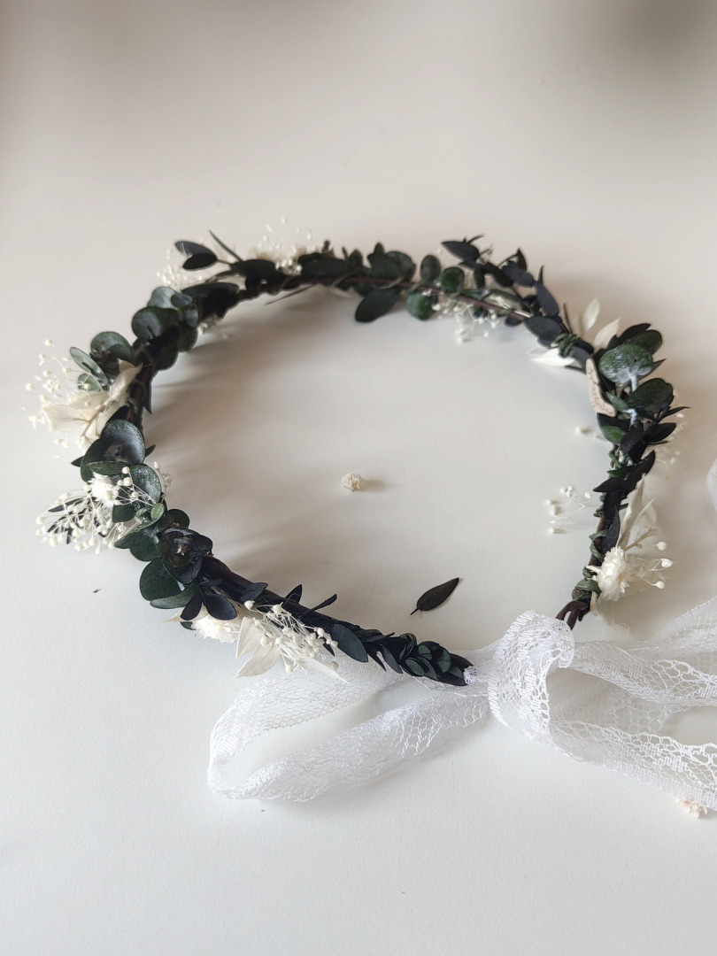 It's made of preserved eucalyptus leaves, preserved and dried material and other material used for arranging. Fragile natural material. It can fall gently. It's not a fault of the product..