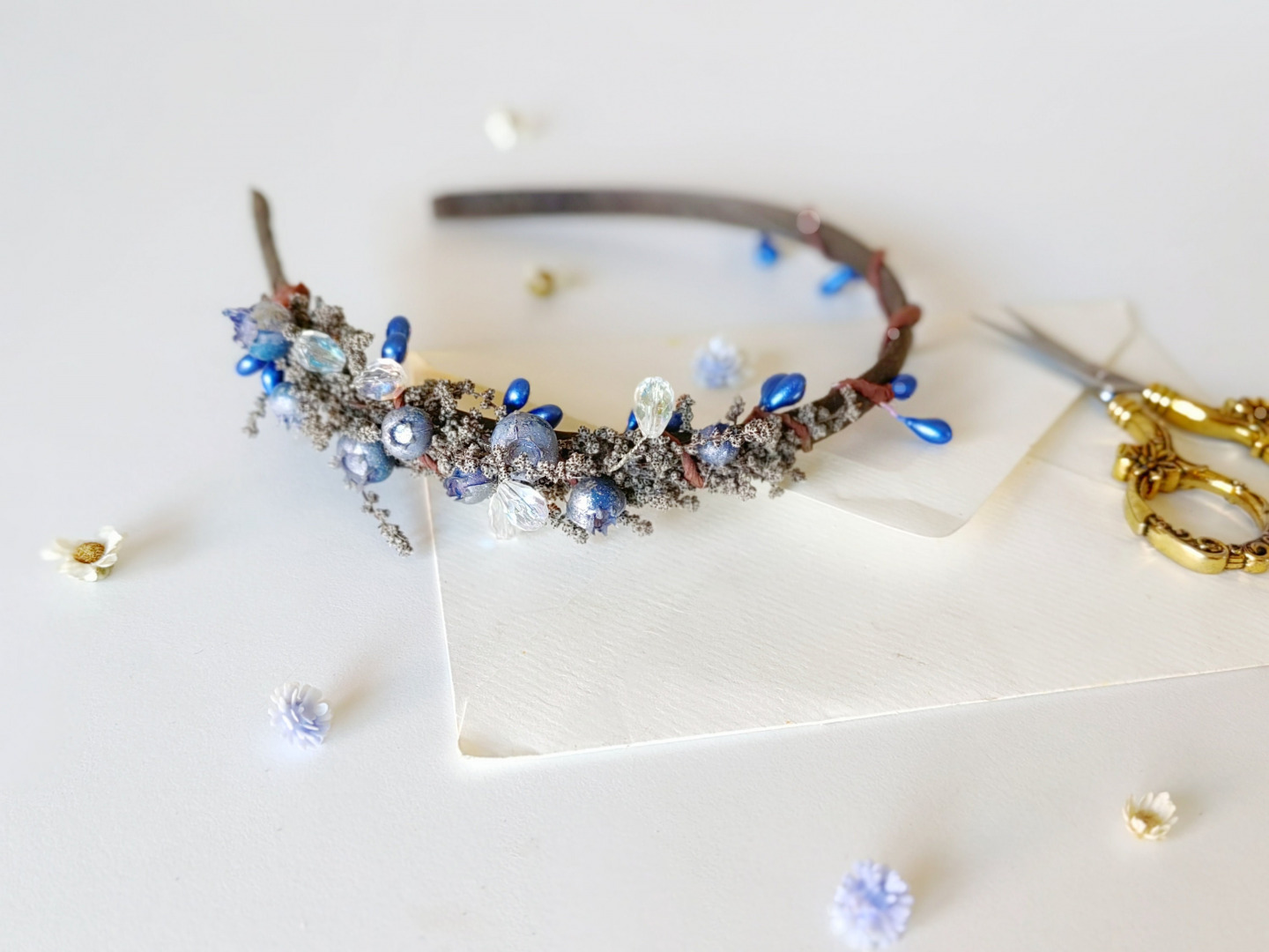 Čelenka je vyrobená z bobuliek, lístkov, trávy a iných drobností určených k aranžovaniu.