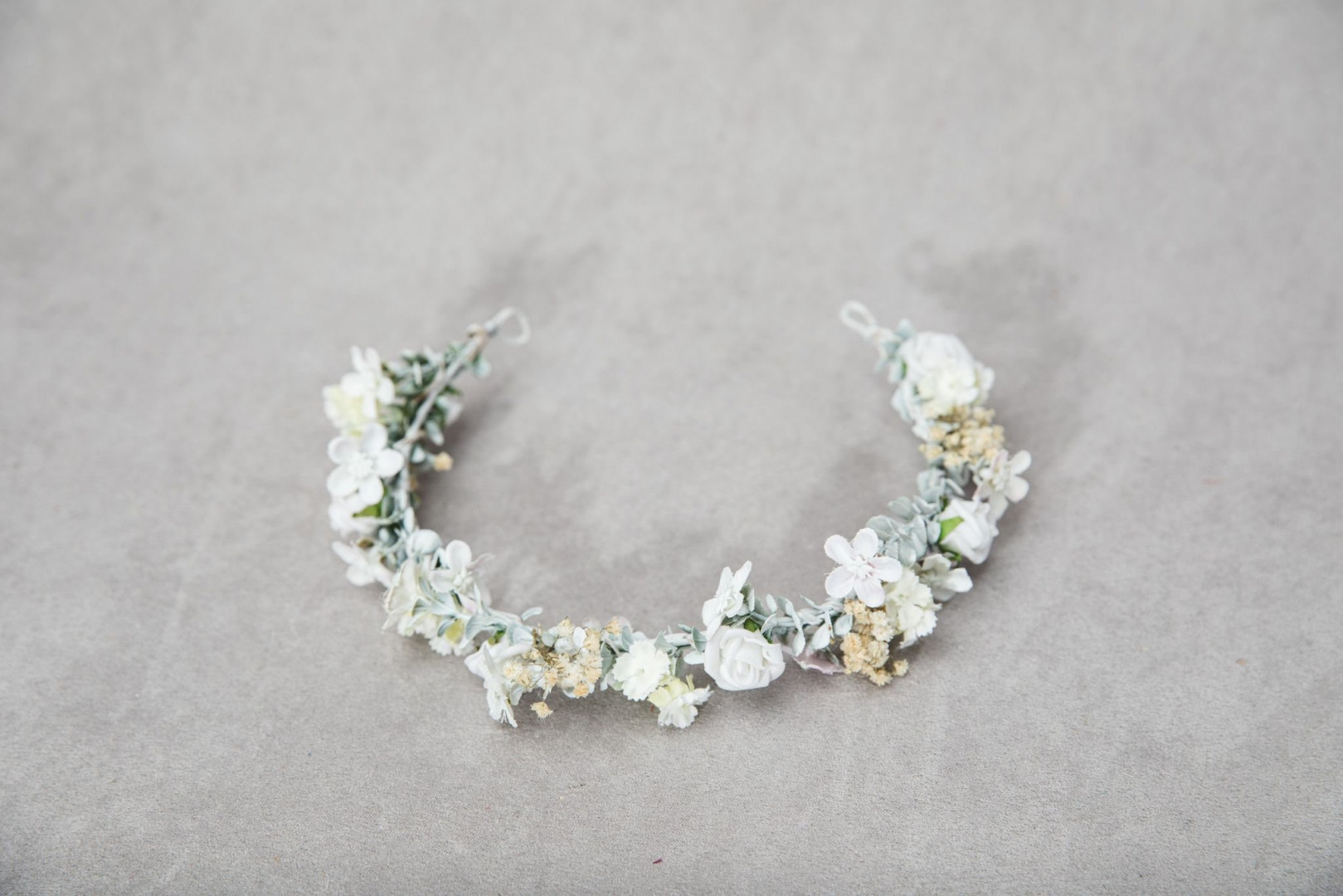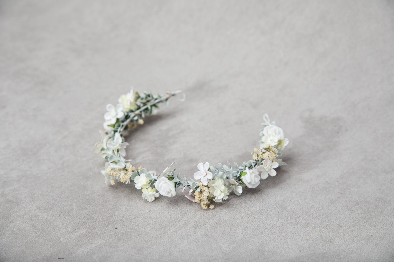 Čelenka je vyrobená z textilných kvietkov, lístkov, trávy a iných drobností určených k aranžovaniu.