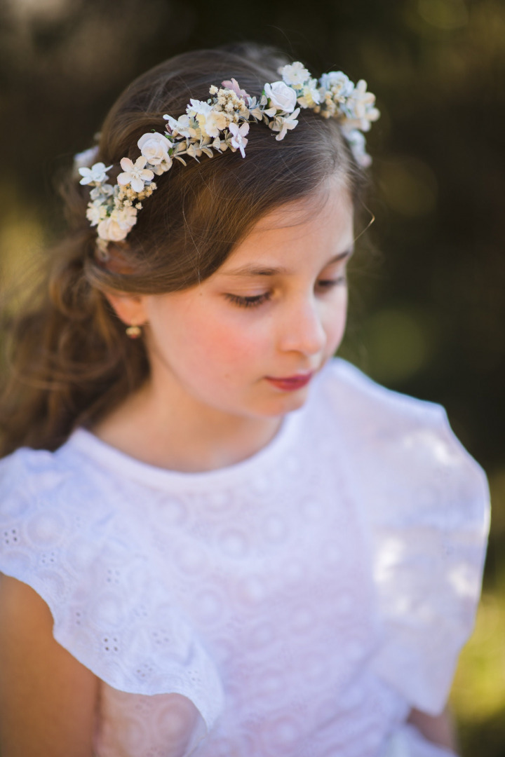 Klasická kvetinová čelenka na špeciálne príležitosti aj bežný deň,zdobená po celom obvode. Univerzálna,vhodná pre deti aj dospelých.