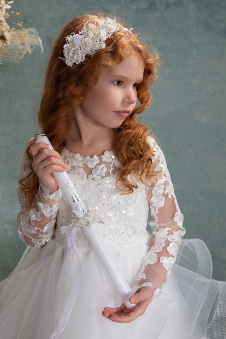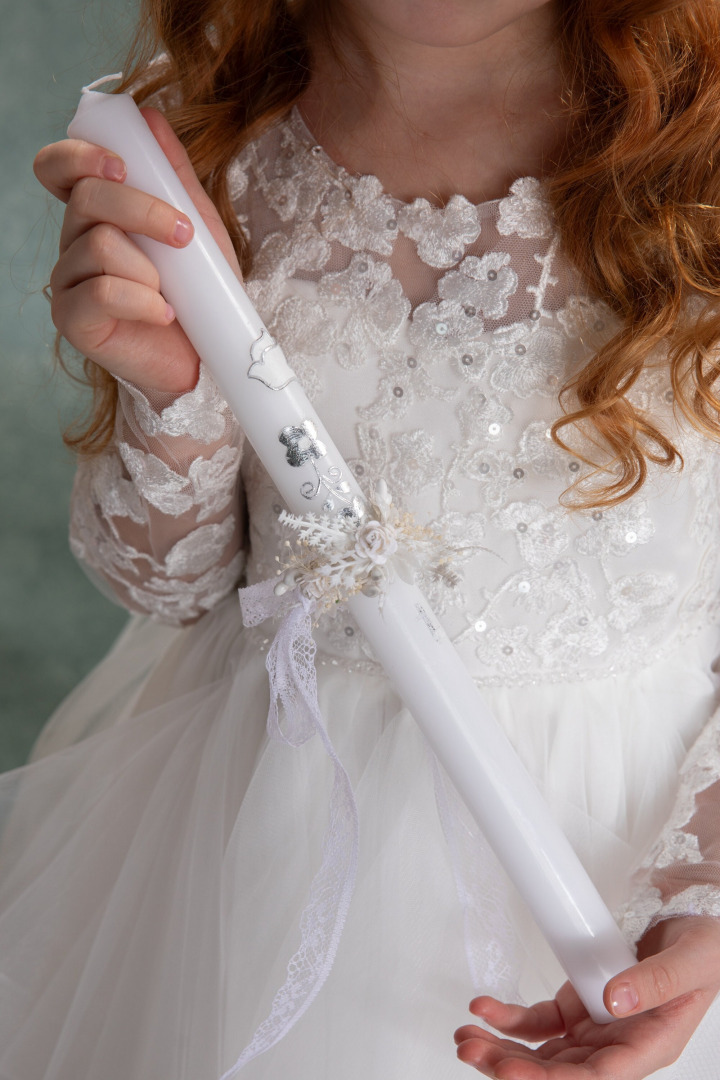White and cream flowers Floral candle decoration First holy communion Candle wreath Floral decoration Candle wreath Magaela accessories