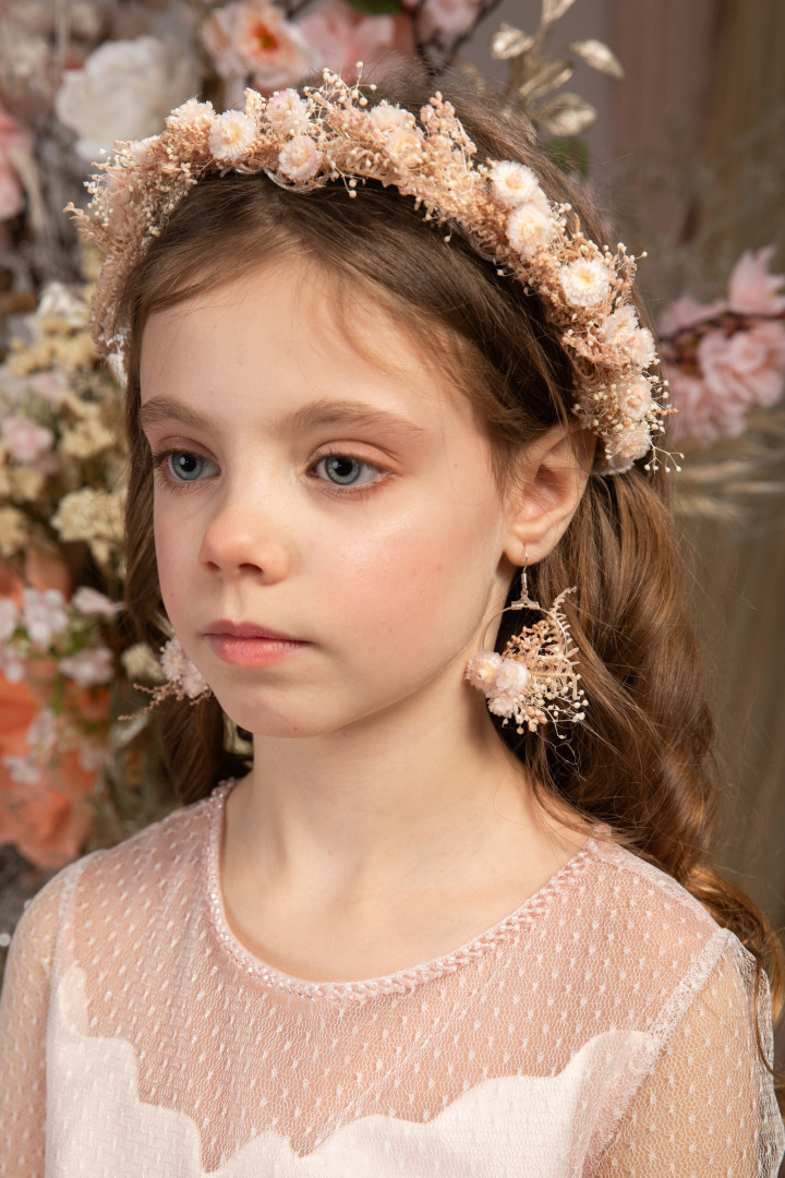 Flower circle earrings Handmade jewellery Floral circle earrings Holy communion First comunnion Pale pink flowers Preserved flowers