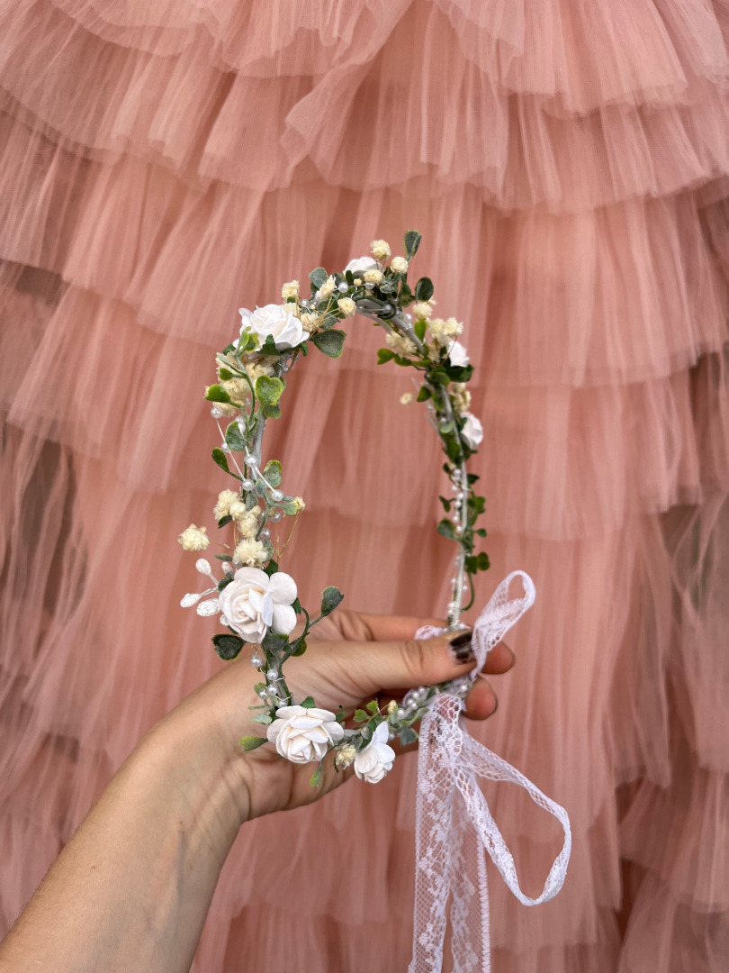 White roses flower wedding crown Bridal wedding headpiece with pearls Romantic baby's breath crown Magaela Holy communion crown Bridal halo