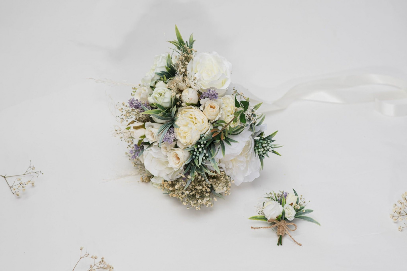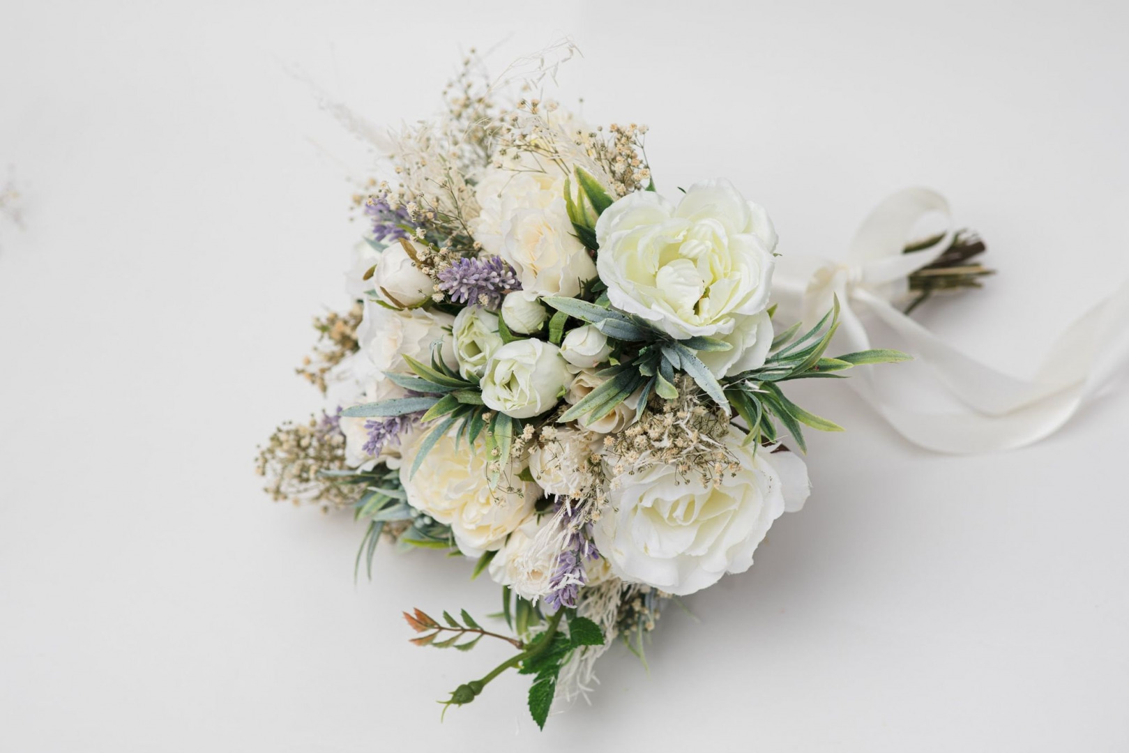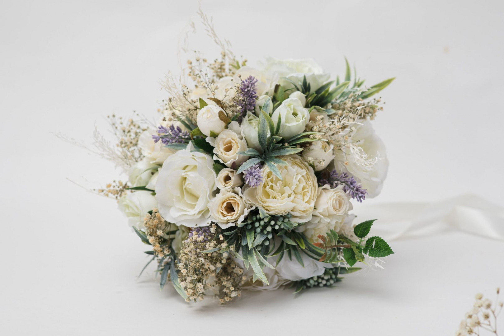 Svadobná boho kytica z umelých a konzervovaných materiálov. Životnosť kytice je pri správnom skladovaní a starostlivosti 10-15 rokov (viac sa dozviete v sekcii STAROSTLIVOSŤ). Kyticu nikdy nedávajte do vody