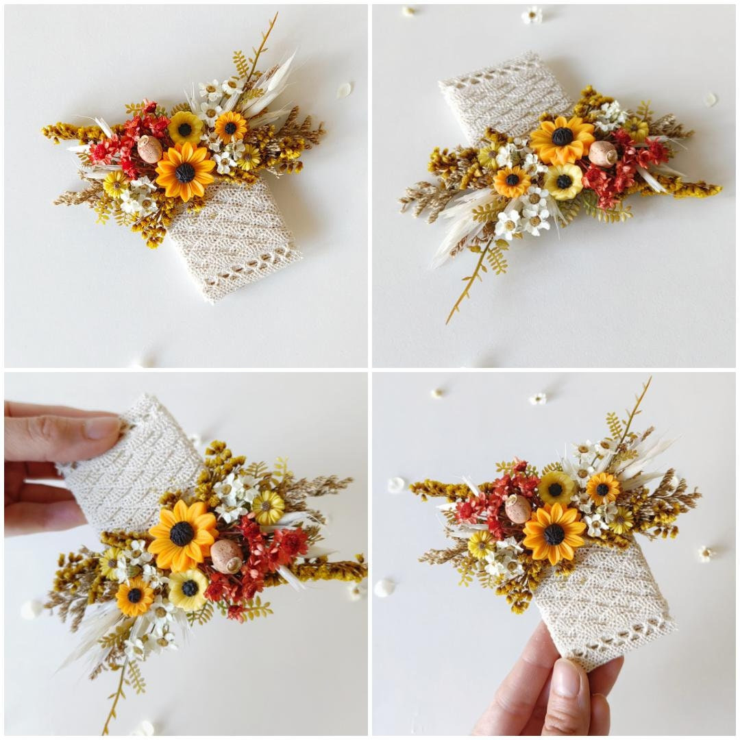 Pierko je vyrobené z textilných a konzervovaných kvetov, krajky a iných umelých drobností určených k aranžovaniu.