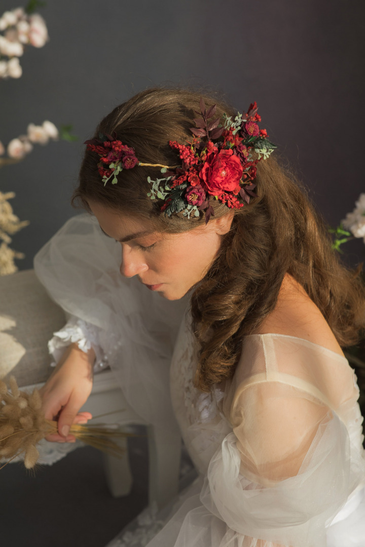 Red and burgundy hair vine. Perfect for brides or photoshoots.