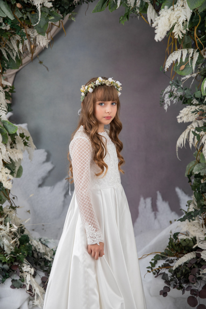 Holy communion crown with white roses and pearls Flower hair wreath for flower girl Bridal accessories Wedding jewellery Headpiece Magaela