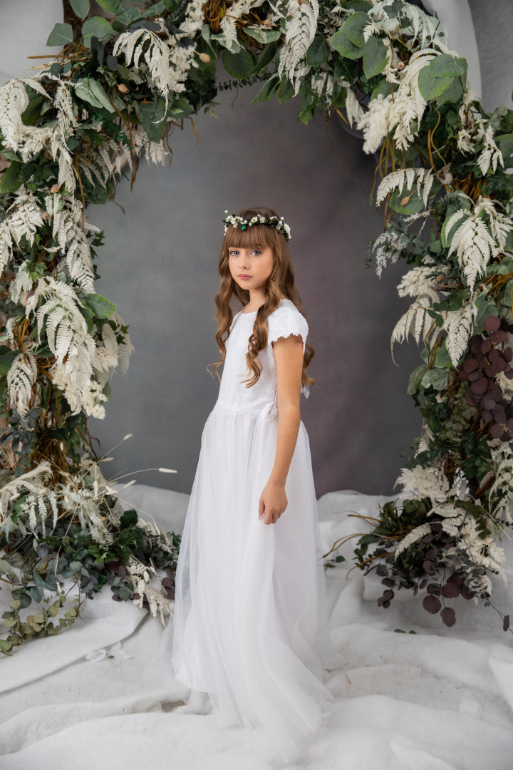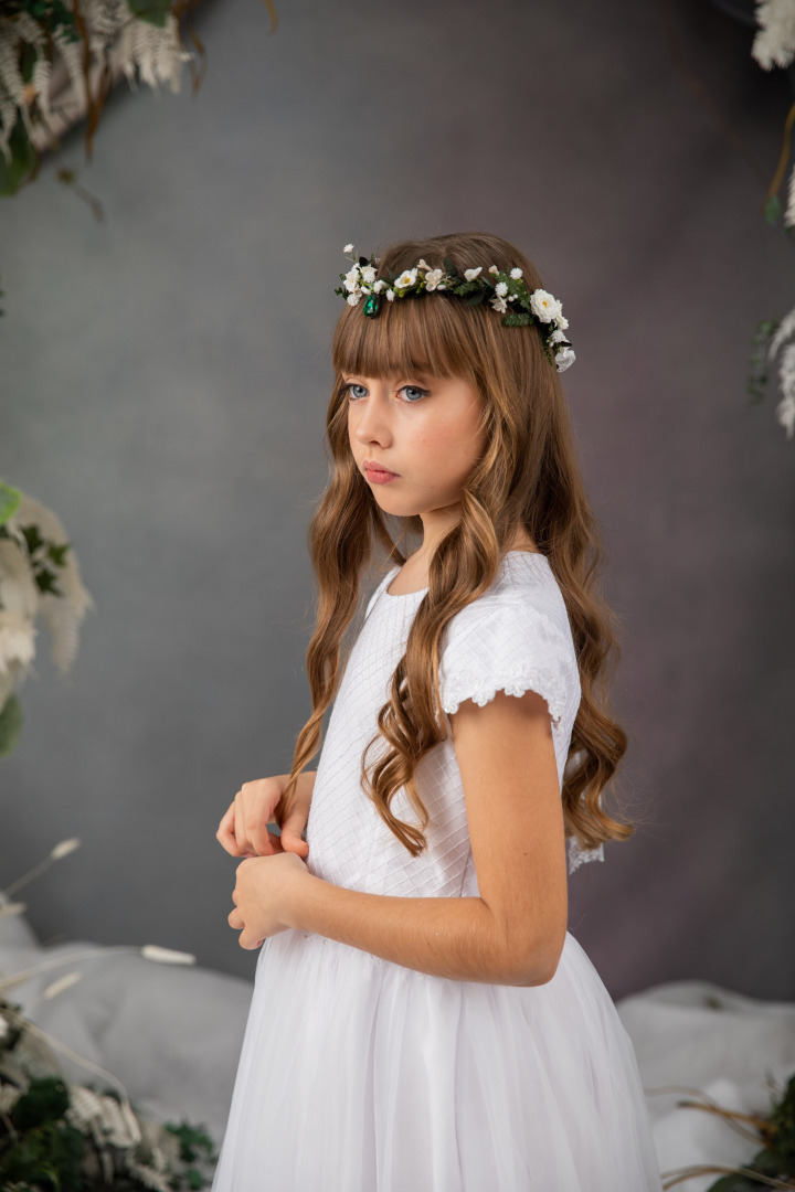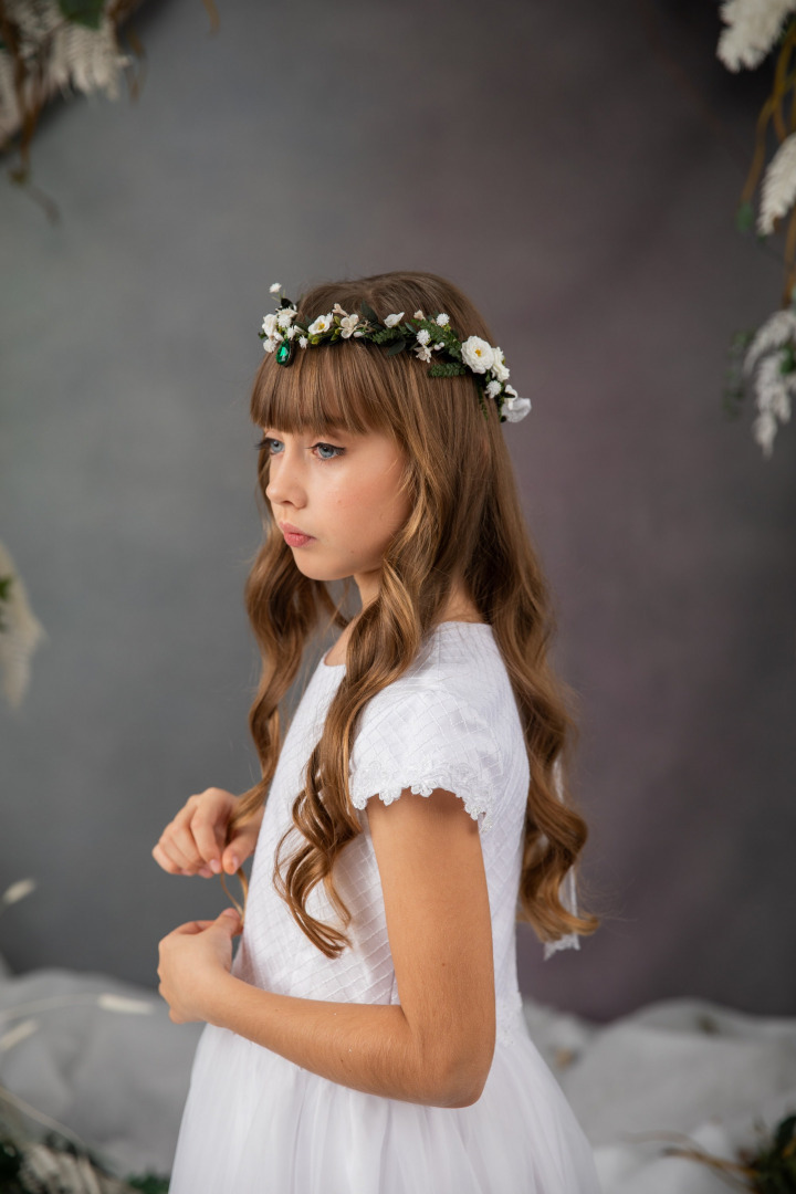 Flower tiara for first holy communion Greenery and white elven tiara Fairy hair crown Wedding accessories Elf tiara for flower girl Magaela
