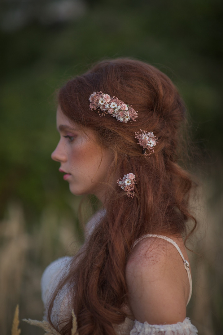 Romantic dried flower comb Blush wedding hair pins Dried hairpins Magaela accessories Romantic wedding Mini hair comb for bride Mini roses