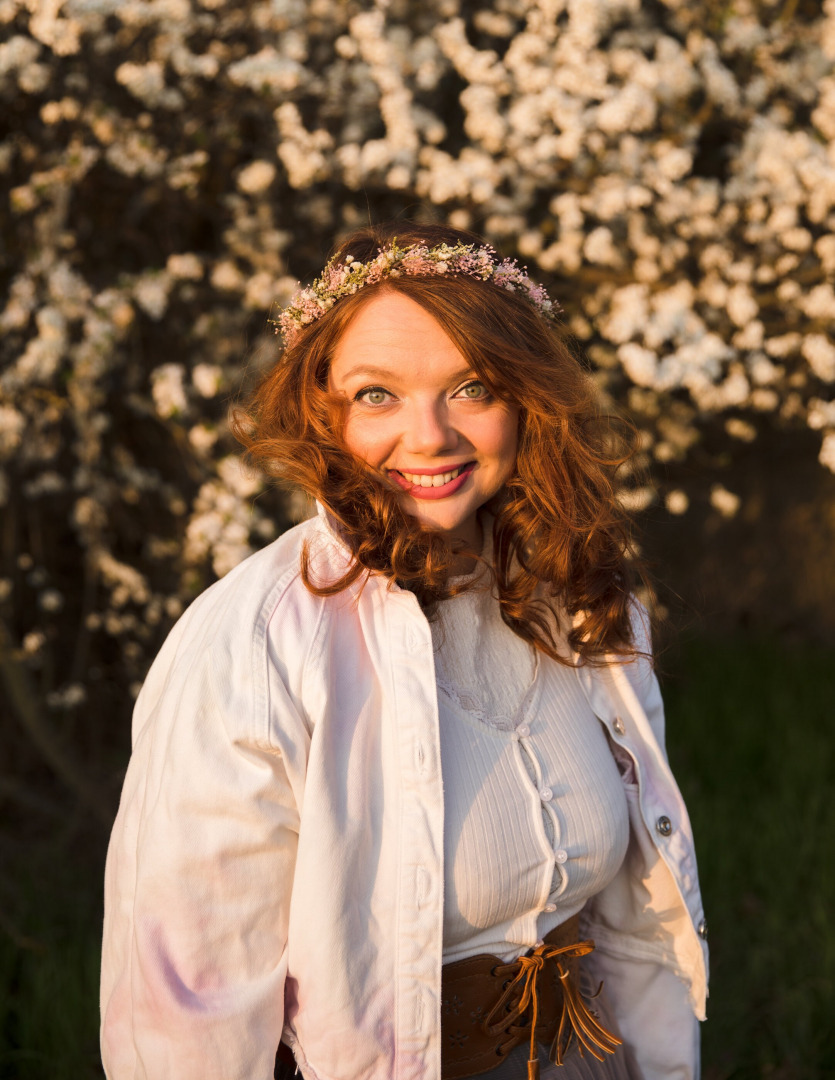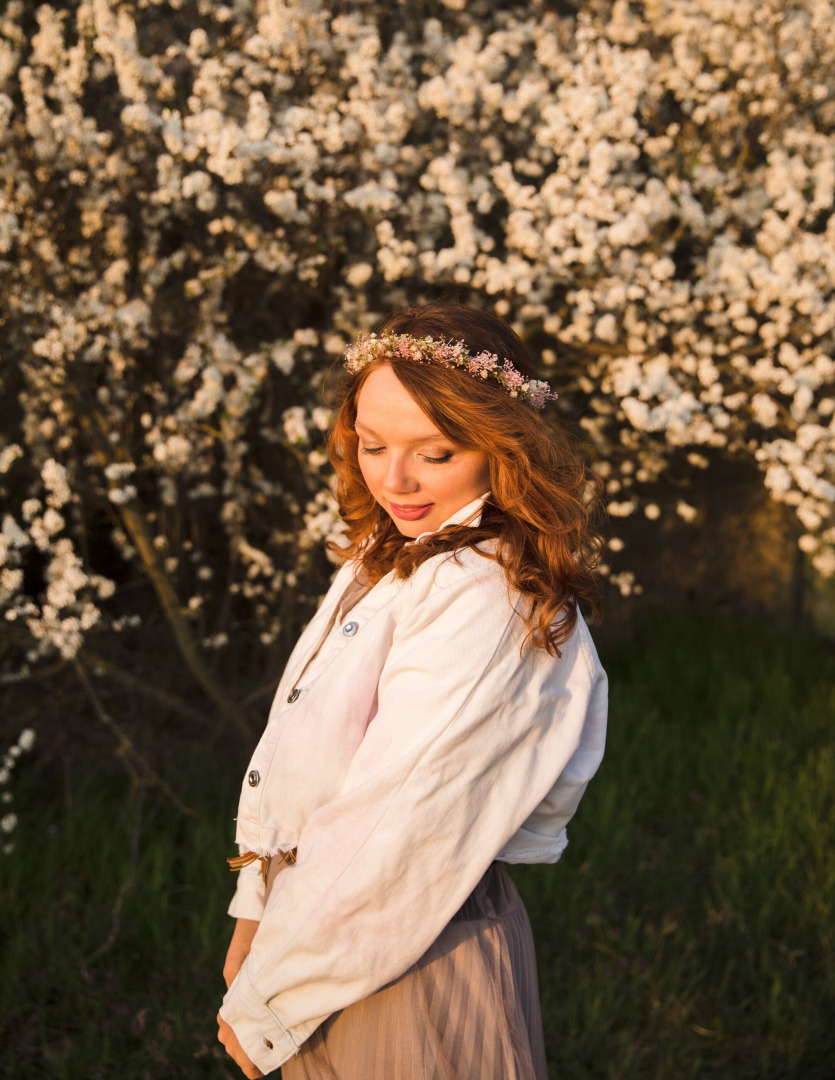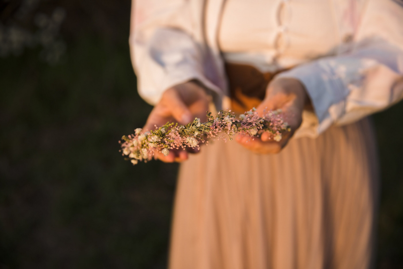 Kvetinový venček v boho romantickom štýle. Obvod venčeka je 48-53 cm. Veľkosť je univerzálna, venček sa viaže a prispôsobuje viazaním stuhou v zadnej časti. ...