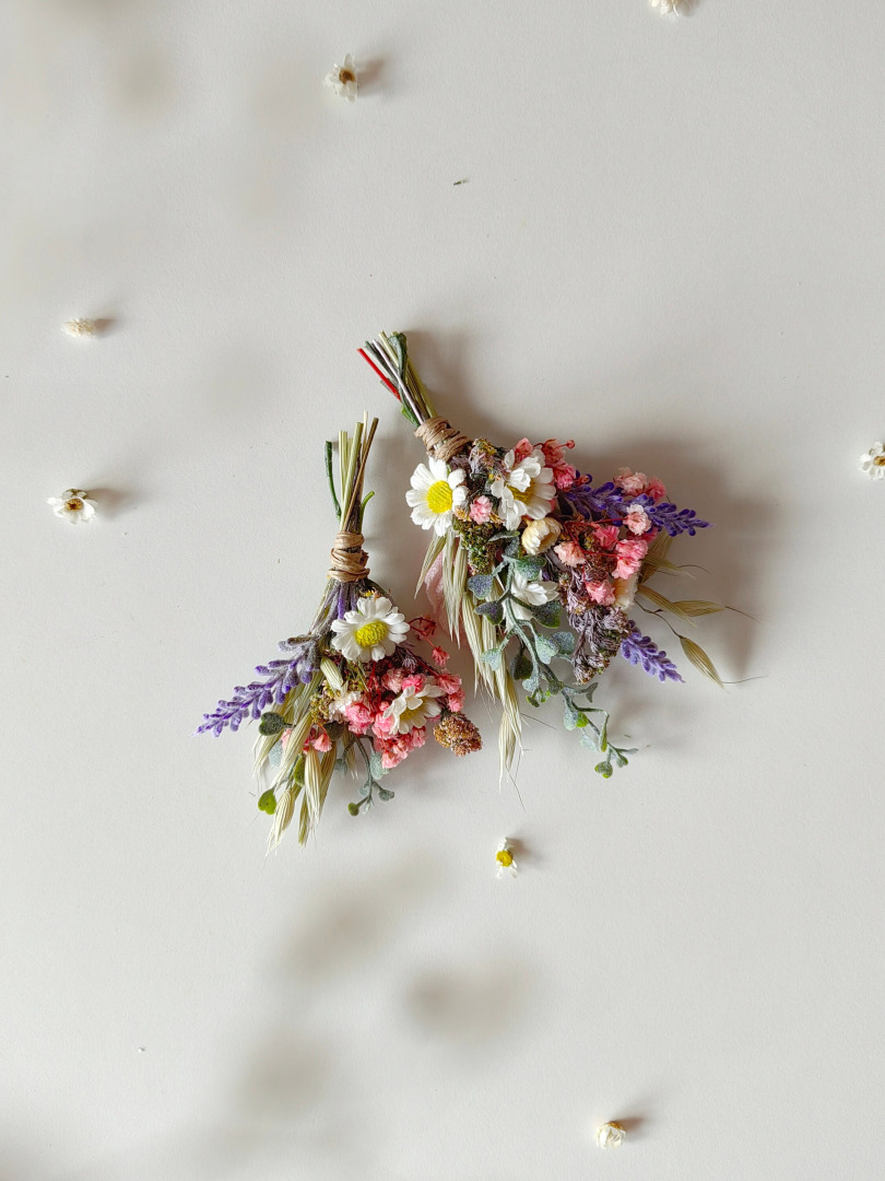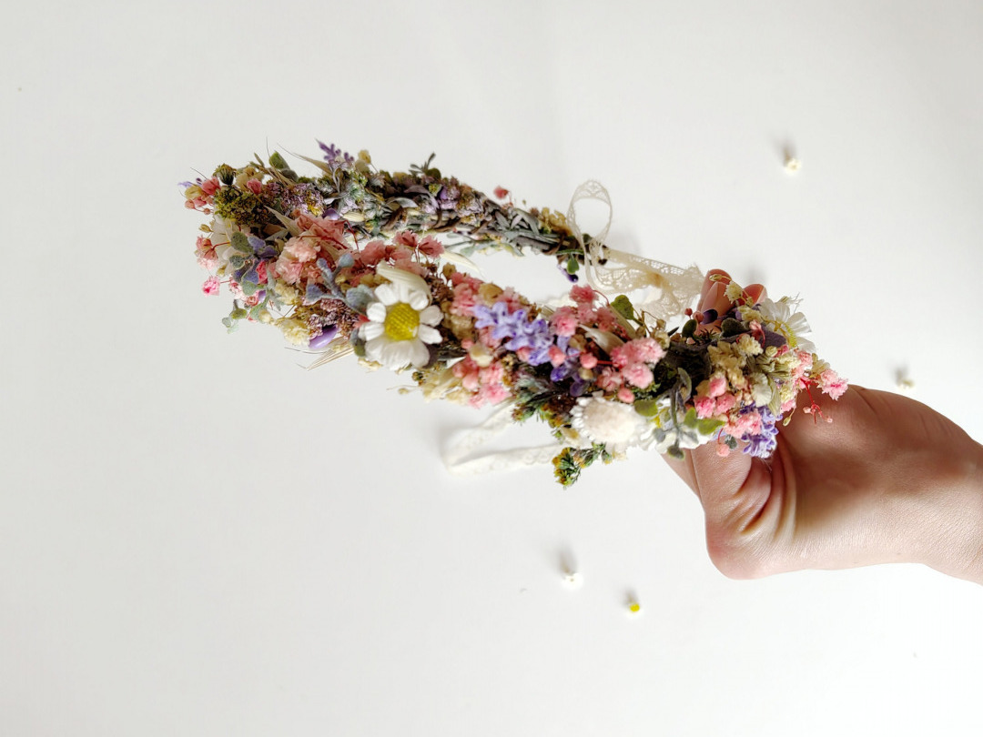 Set consists of flower half wreath, hair comb, boutonnieres, bracelet and belt. Beautiful wild flowers design with daisy flowers...